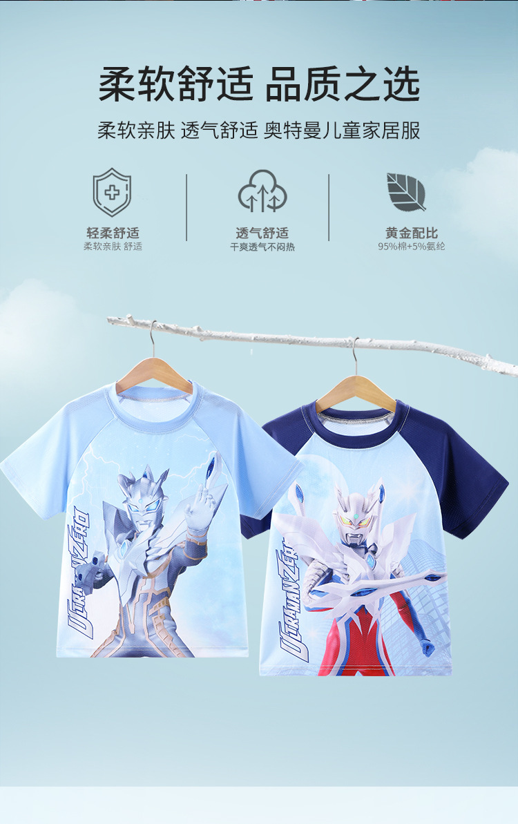 울트라 맨 아동용 반팔 티셔츠 여름 의류 여름 아동복 아동상의 여름 밀착형 2025 새로운 잘 생긴 반팔스토어 가기