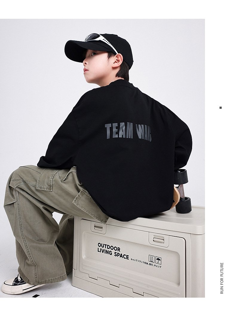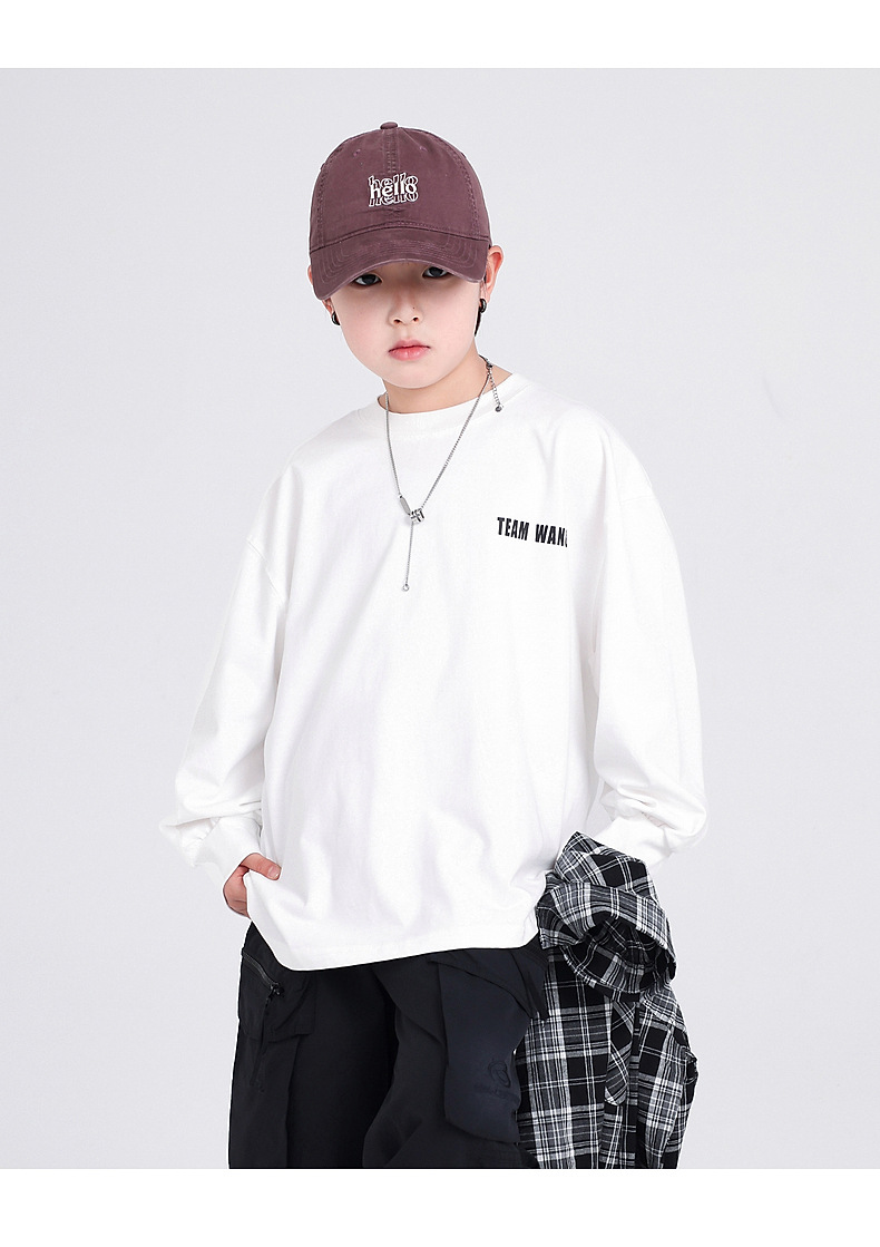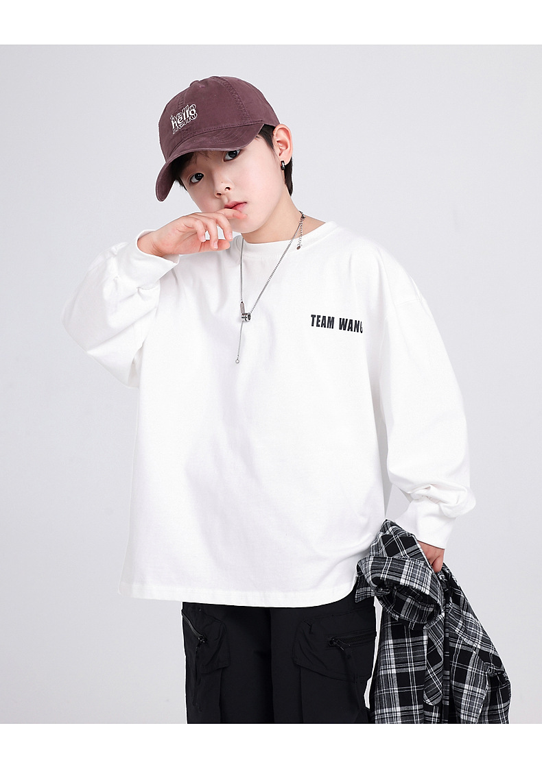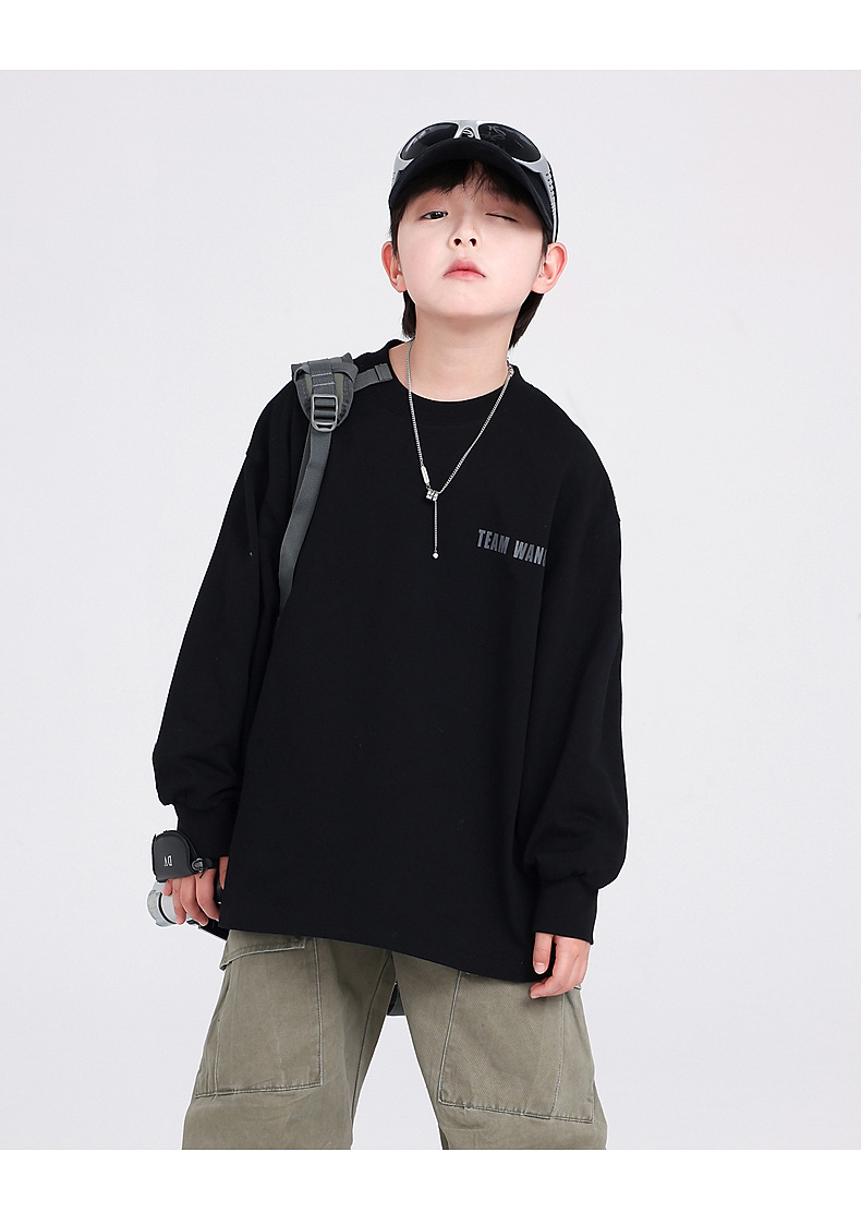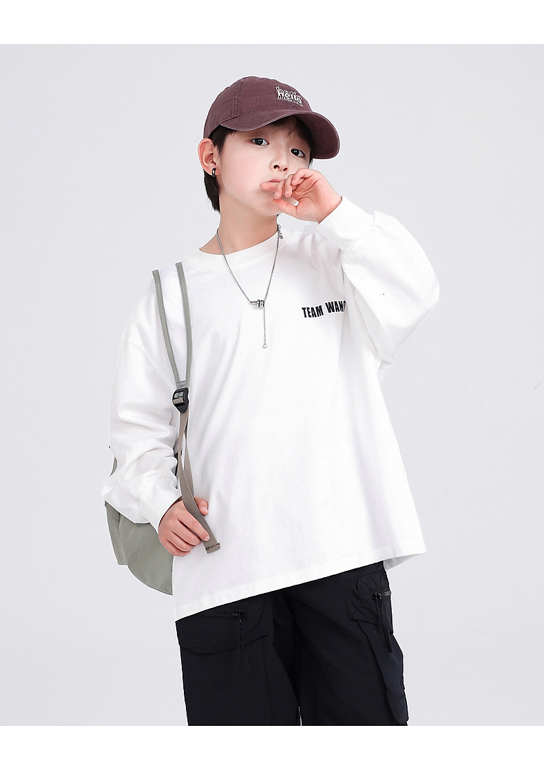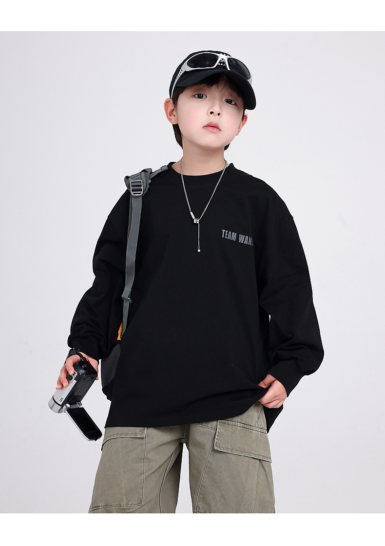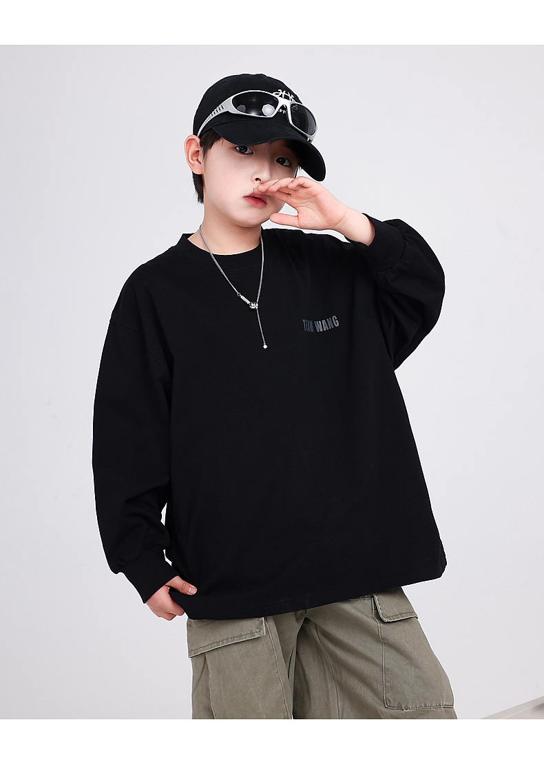 남아용 봄가을 긴팔 루즈핏 순면 티셔츠 2025 신상 아동 남아 가을옷 멋진 이너웨어 유행 상의스토어 가기