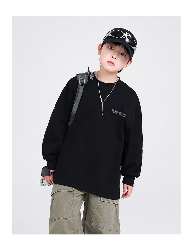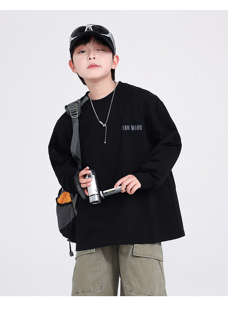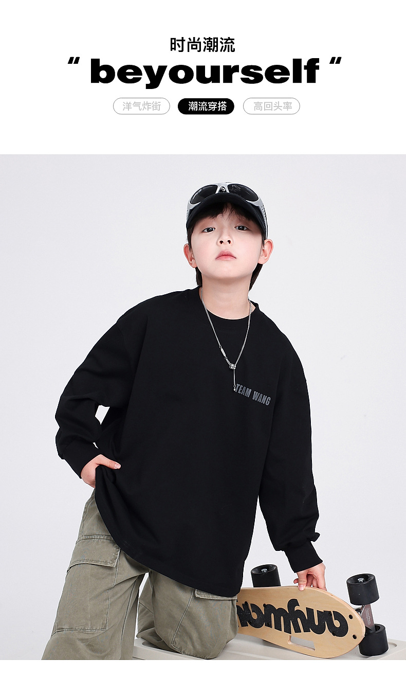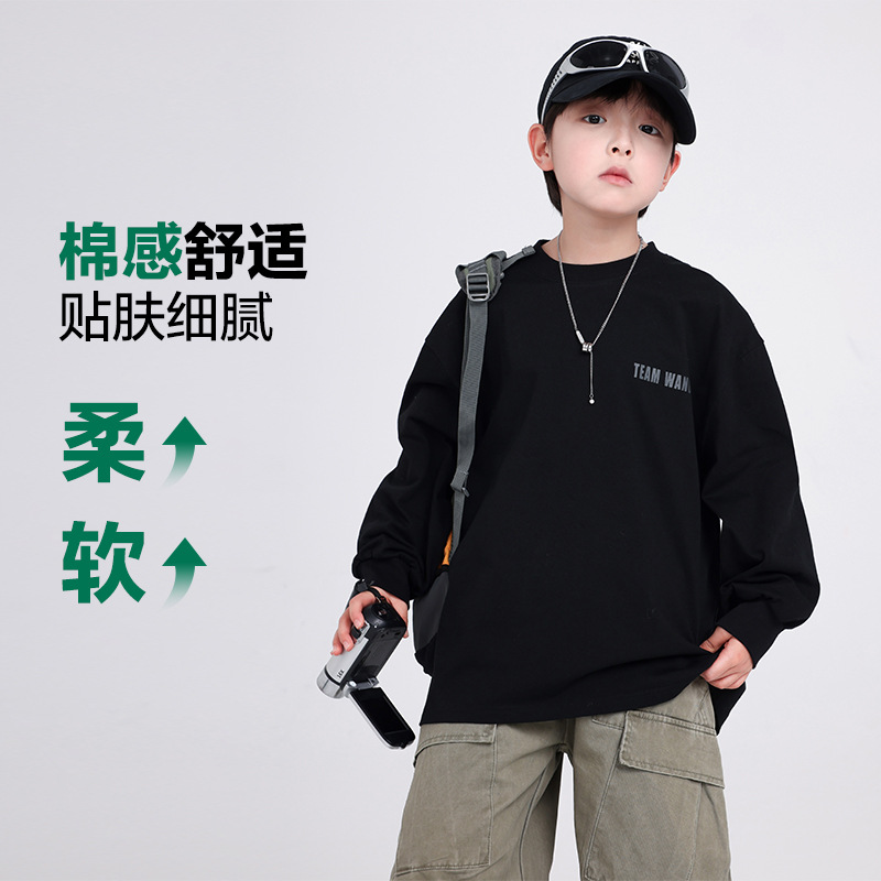 남아용 봄가을 긴팔 루즈핏 순면 티셔츠 2025 신상 아동 남아 가을옷 멋진 이너웨어 유행 상의