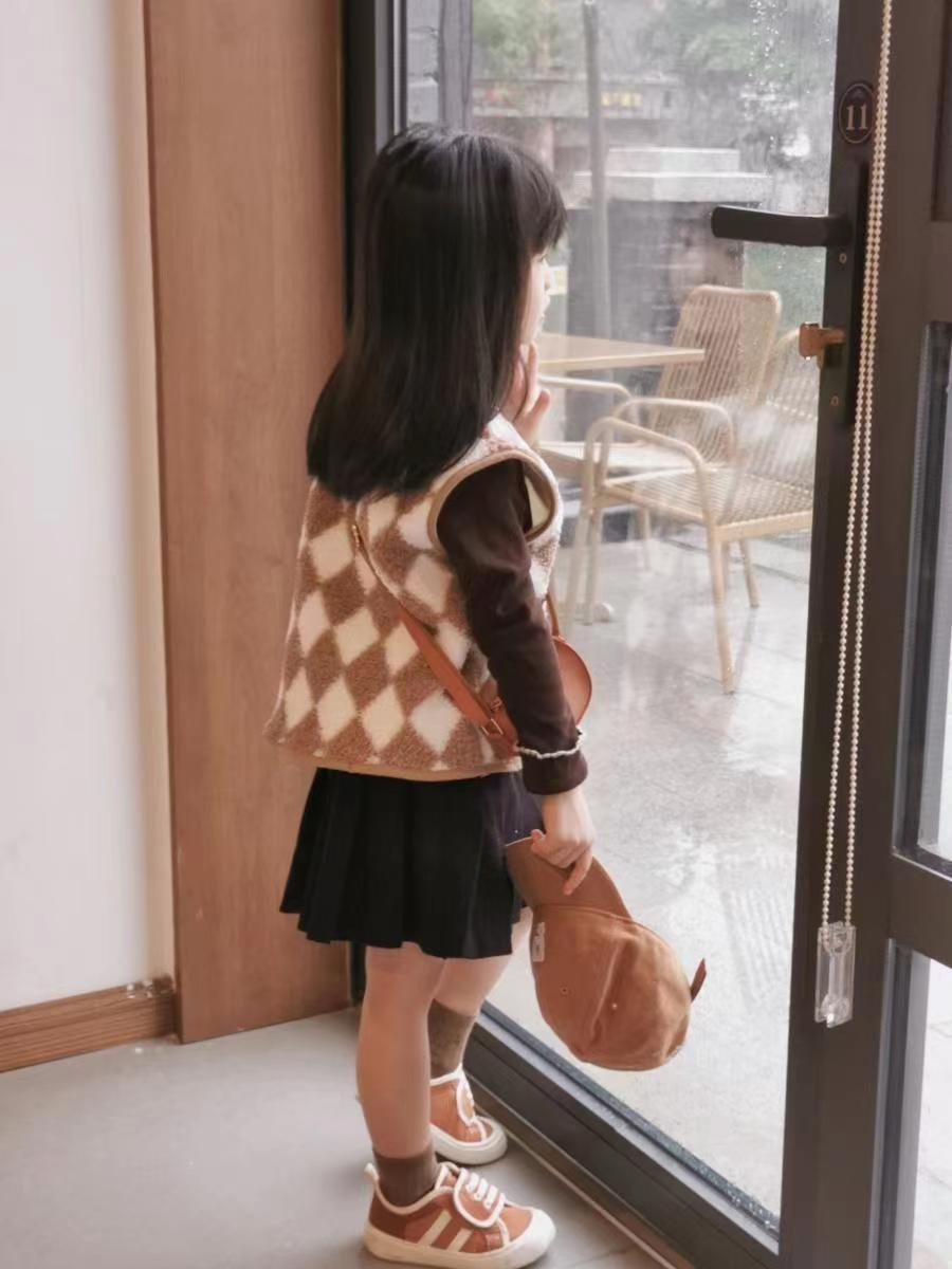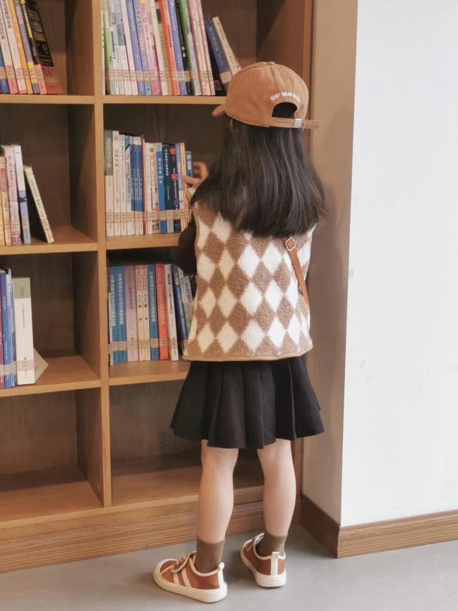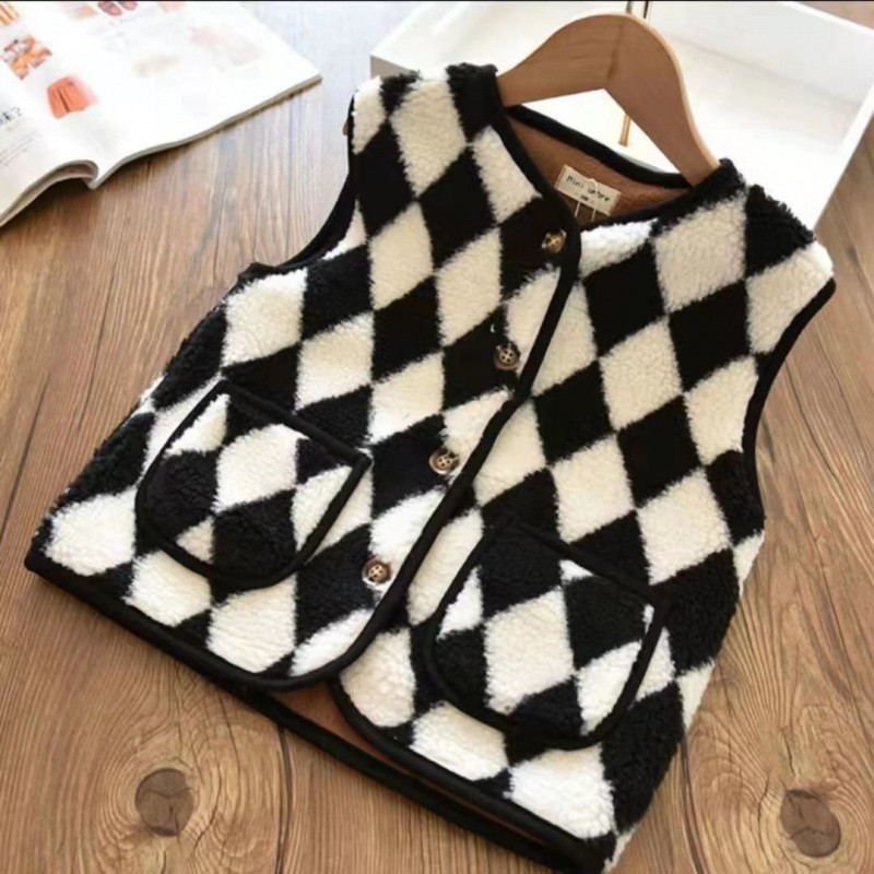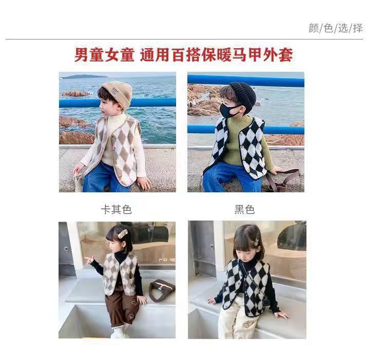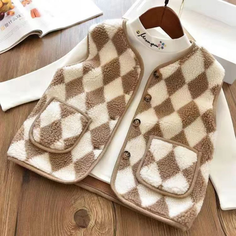 어린이 조끼 봄과 가을 격자 무늬 유아 및 아동 의류 중대형 어린이 양털 양털 조끼스토어 가기