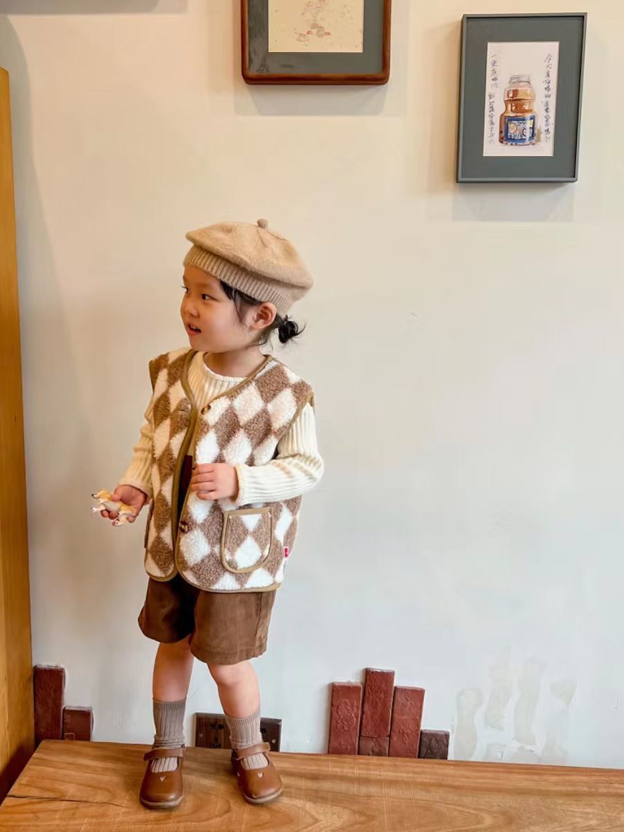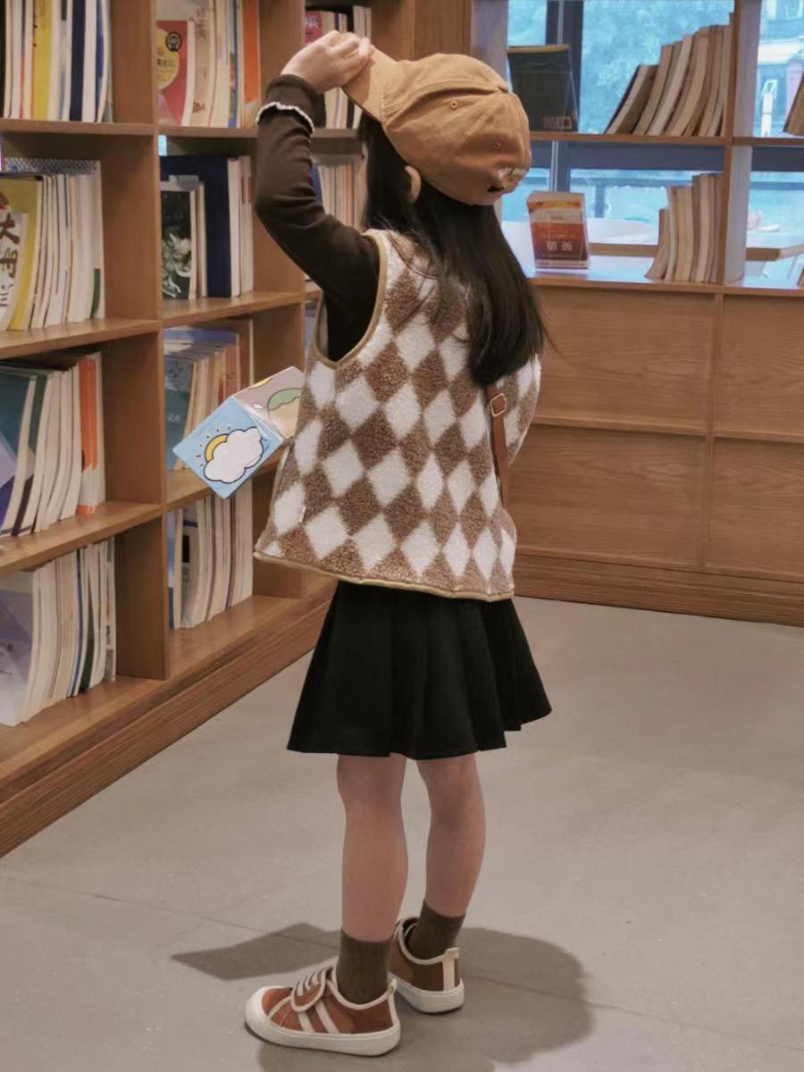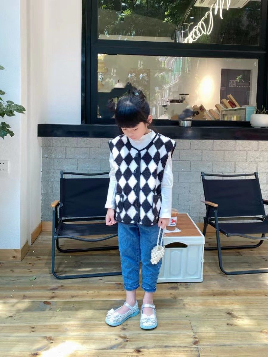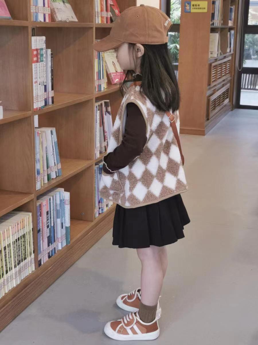 어린이 조끼 봄과 가을 격자 무늬 유아 및 아동 의류 중대형 어린이 양털 양털 조끼스토어 가기