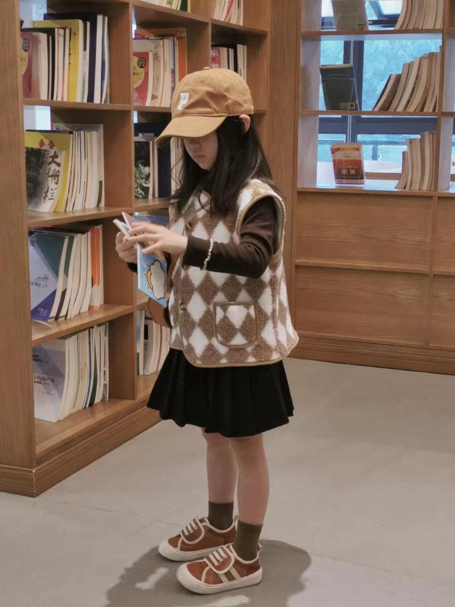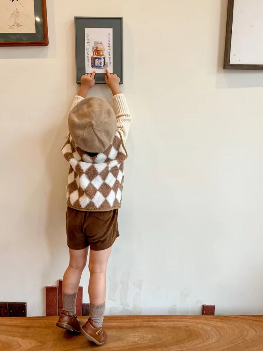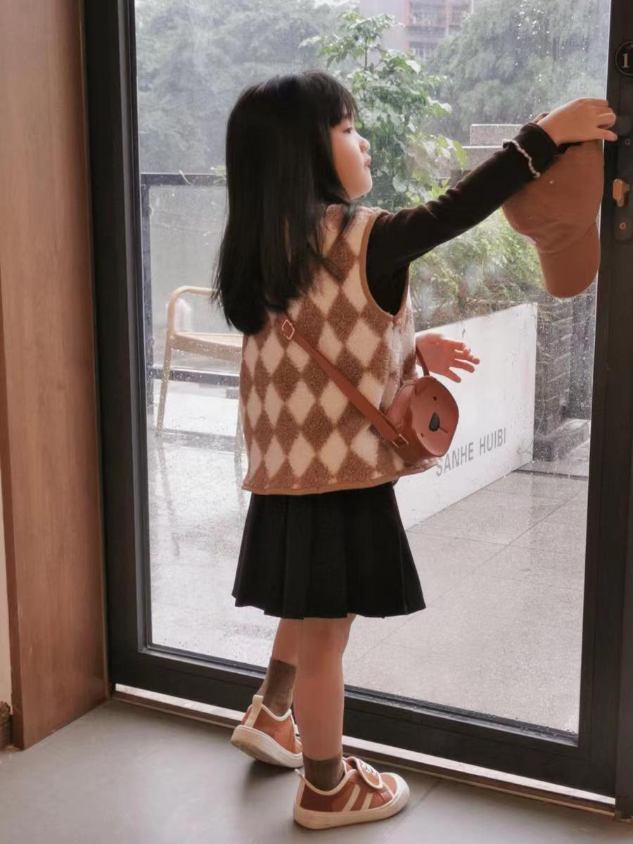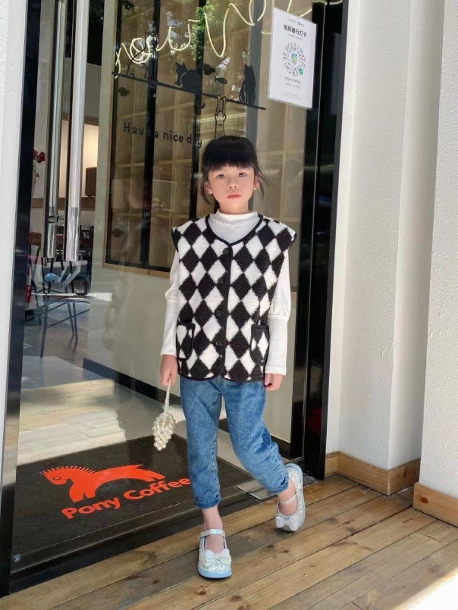 어린이 조끼 봄과 가을 격자 무늬 유아 및 아동 의류 중대형 어린이 양털 양털 조끼스토어 가기