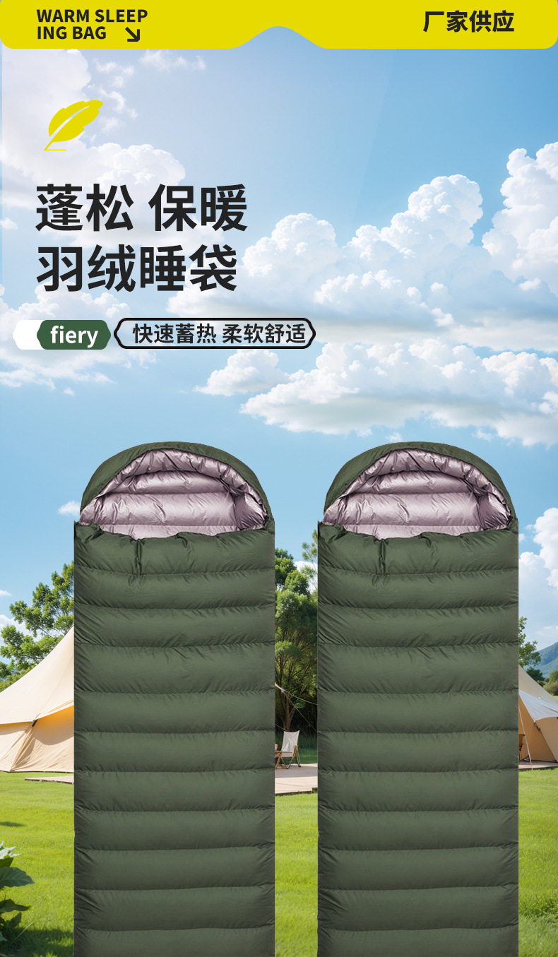야외 캠핑용 두꺼운 다운 침낭, 낮잠용 보온 방오 성인용 침낭, 경량 침낭 도매스토어 가기