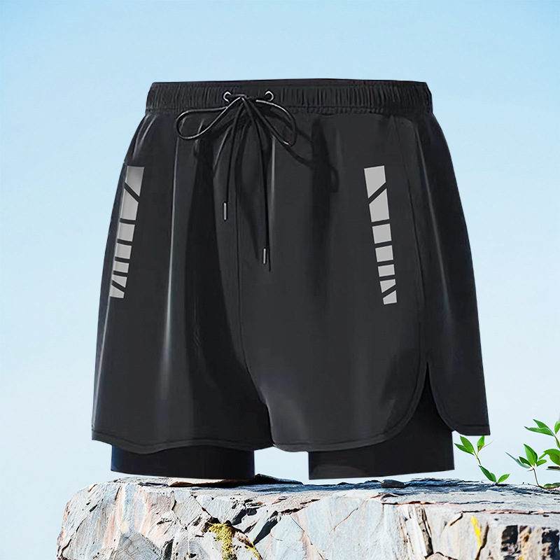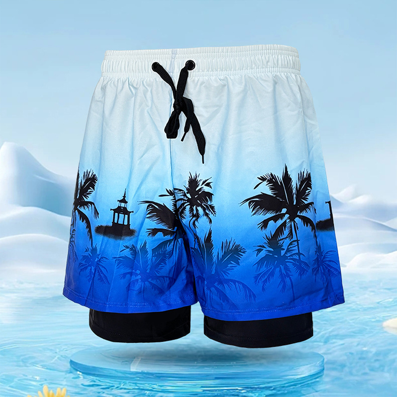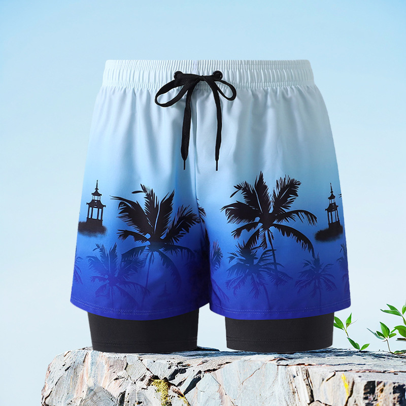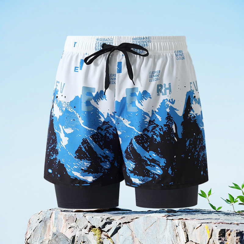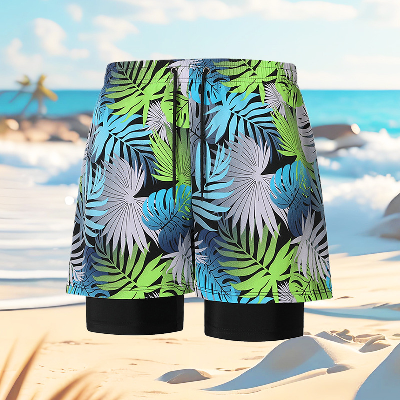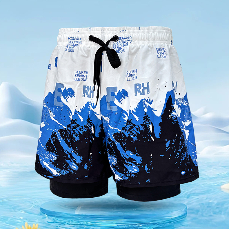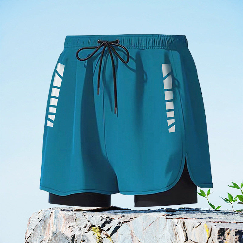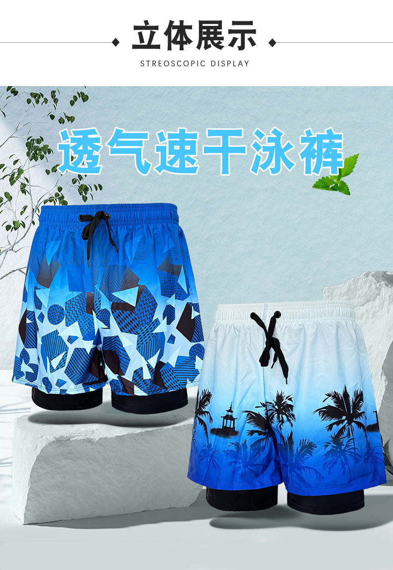수영 바지 남자 더블 레이어 안티 당황스러운 2025 여름 새로운 성인 수영복 대형 느슨한 수영 바지 공장 도매스토어 가기