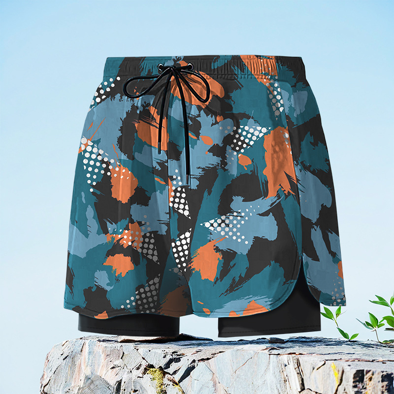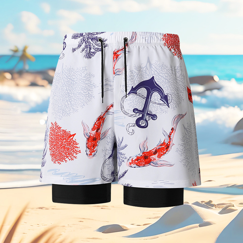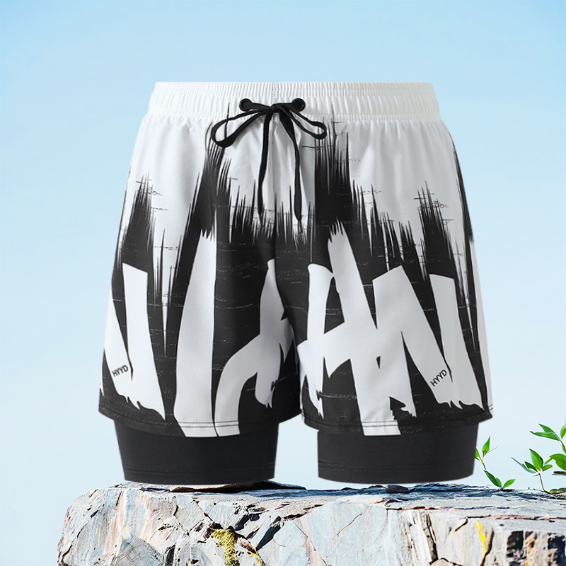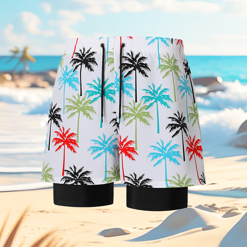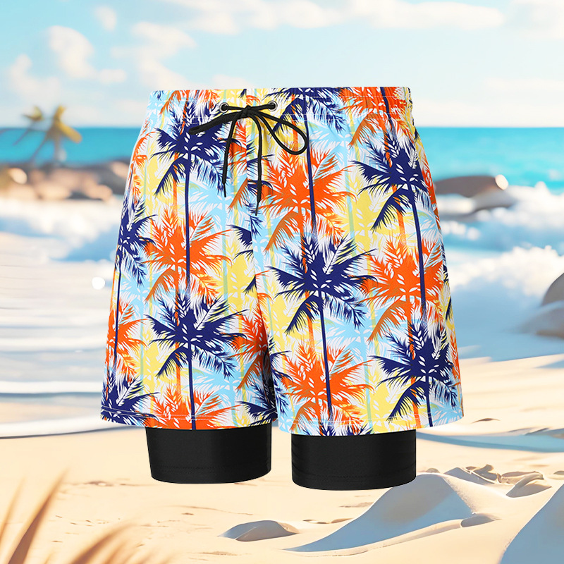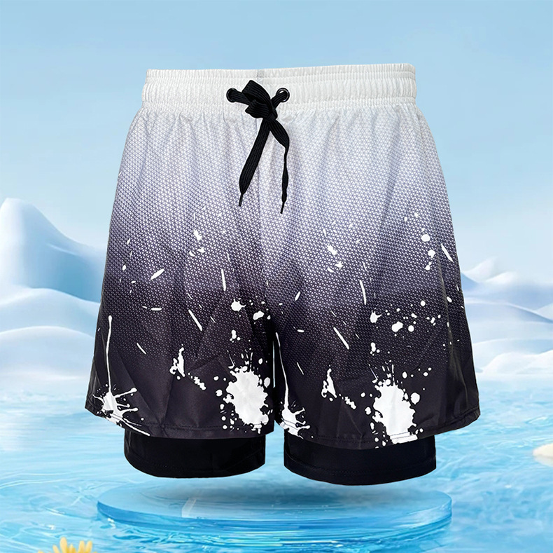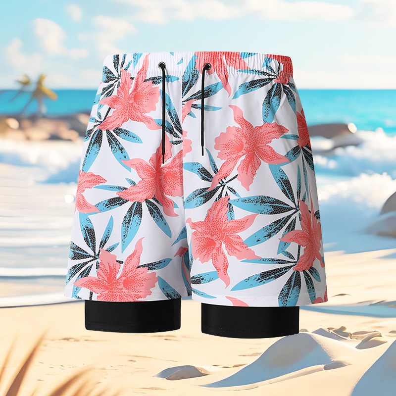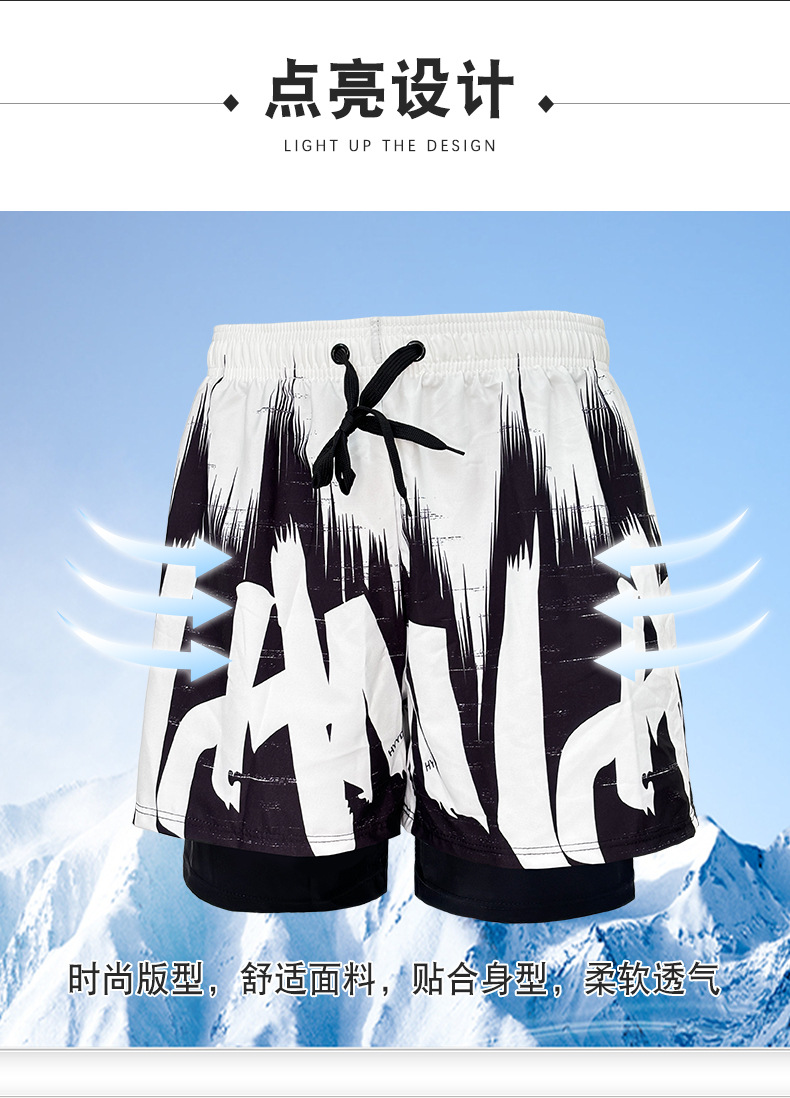수영 바지 남자 더블 레이어 안티 당황스러운 2025 여름 새로운 성인 수영복 대형 느슨한 수영 바지 공장 도매스토어 가기