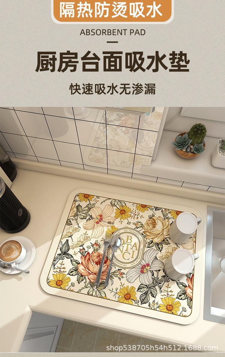 주방 배수구 매트 가정용 식탁 매트 흡수성 매트 그릇 건조 플레이스 카운터 탑 식기 식기 식기 식기 식탁 커피 매트스토어 가기