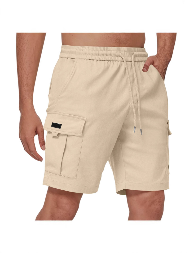 2025 년 크로스 보더 남성 단색 드로 스트링 탄성 허리 멀티 포켓 스트레이트 팬츠 팬츠 바지 바지 바지 바지 바지 바지