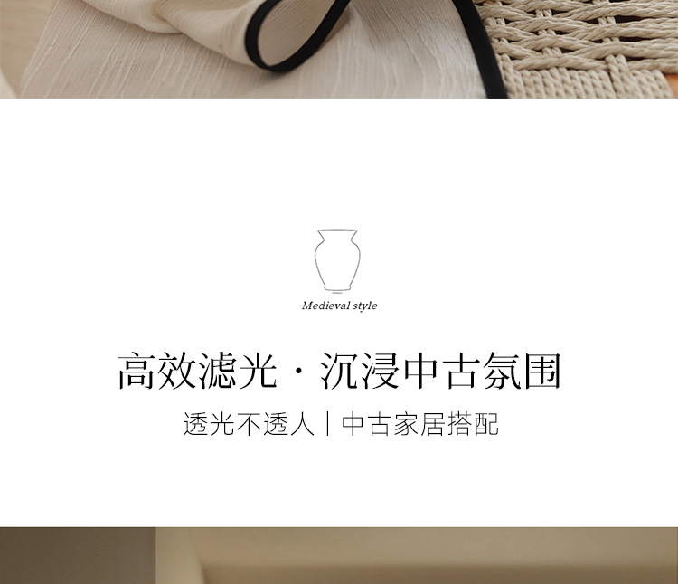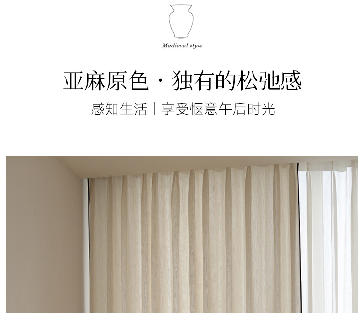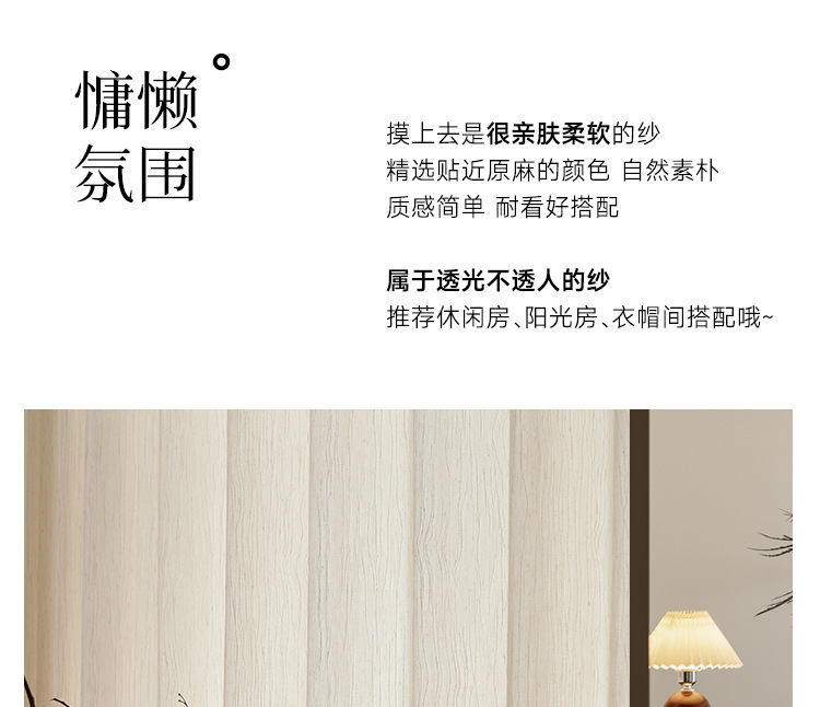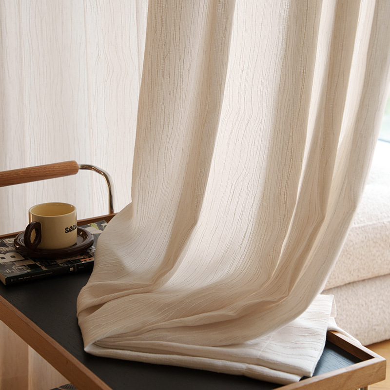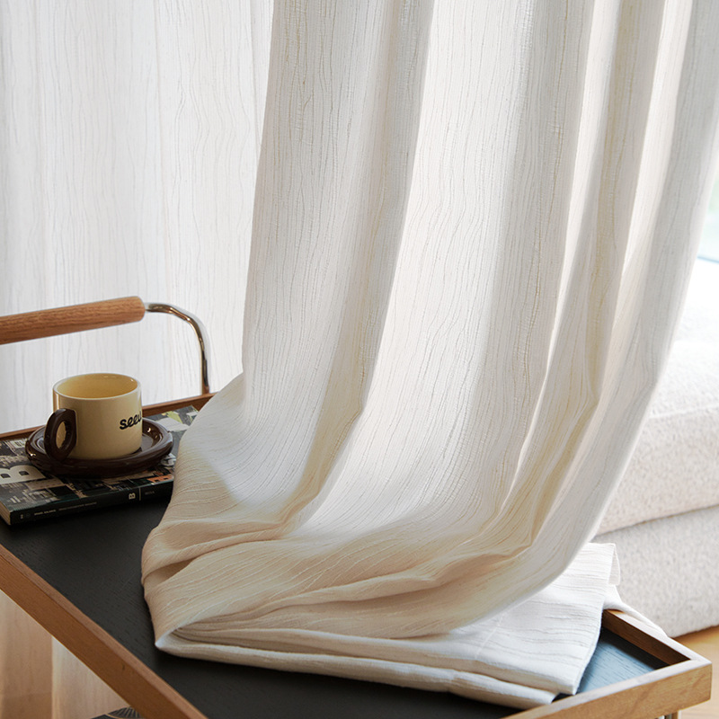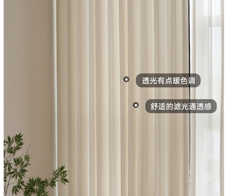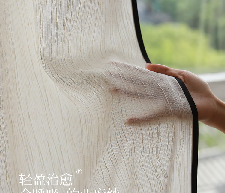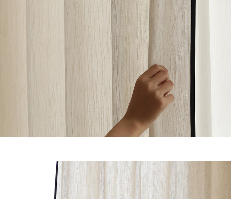 Fufeng Yarn Linen Cotton 및 Linen 질감 수직 줄무늬 자카드 분위기 투명하고 Impenious Black Edge 모양 거실 원사 커튼스토어 가기