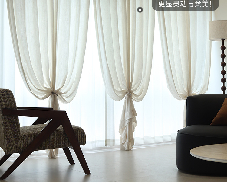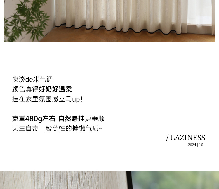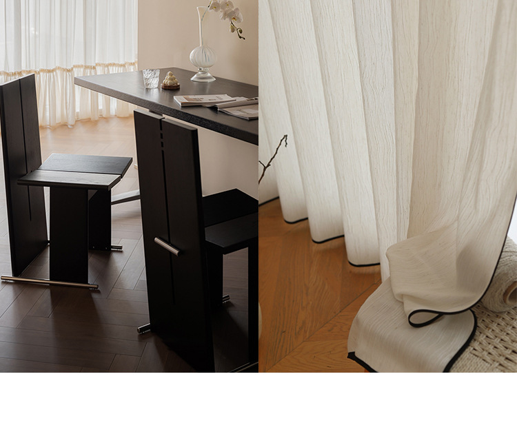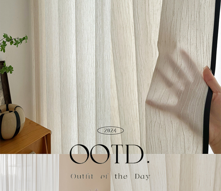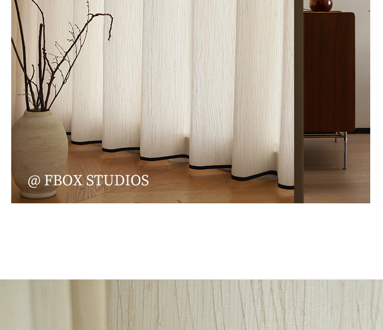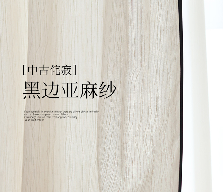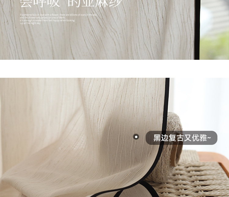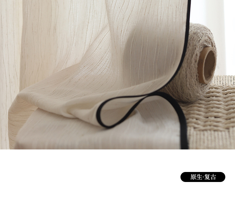 Fufeng Yarn Linen Cotton 및 Linen 질감 수직 줄무늬 자카드 분위기 투명하고 Impenious Black Edge 모양 거실 원사 커튼