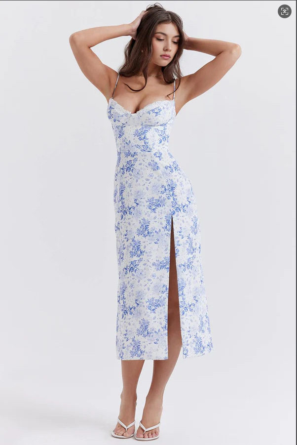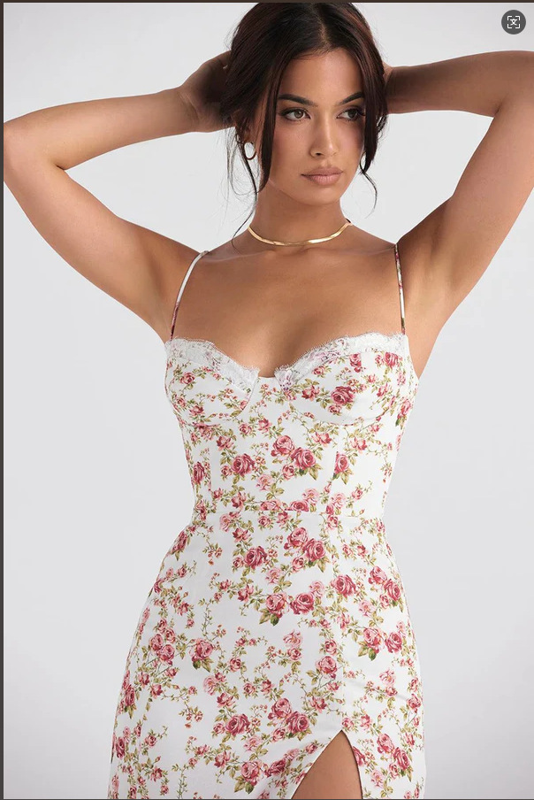 2025 새로운 국경 유럽 및 미국 여성의 섹시한 슬림 슬링 스트랩 스플릿 레이스 튜브 탑 작은 꽃 원피스스토어 가기