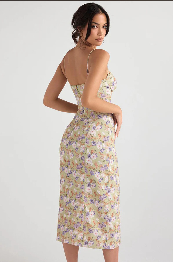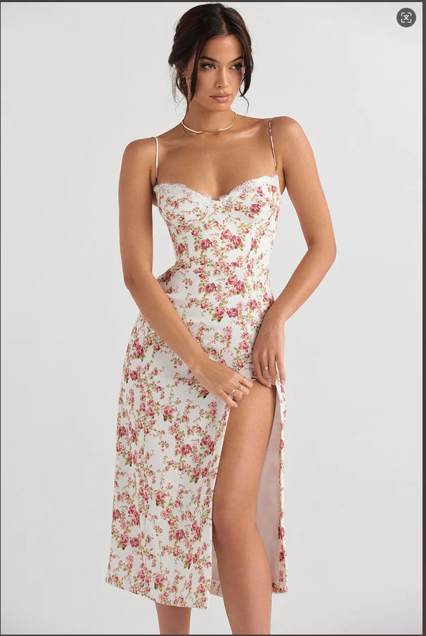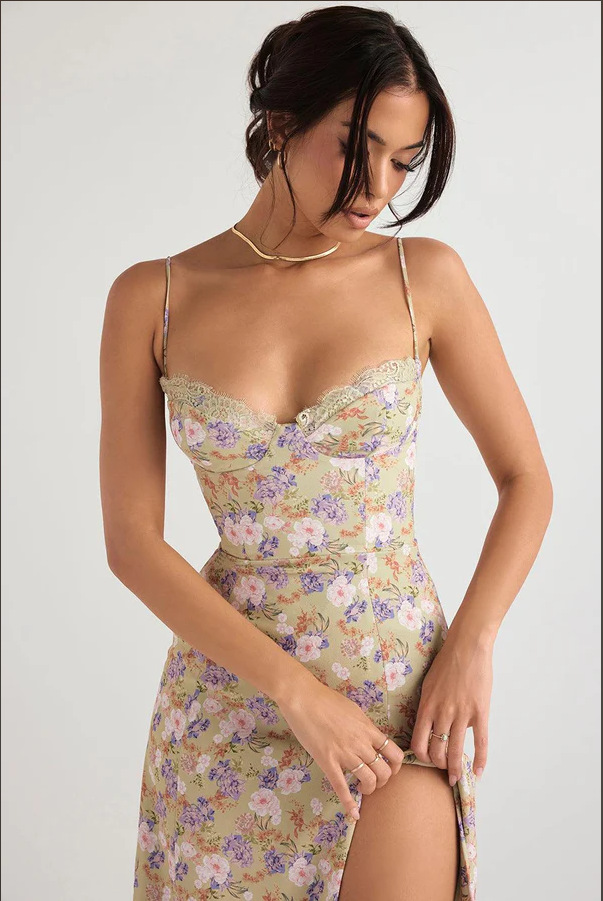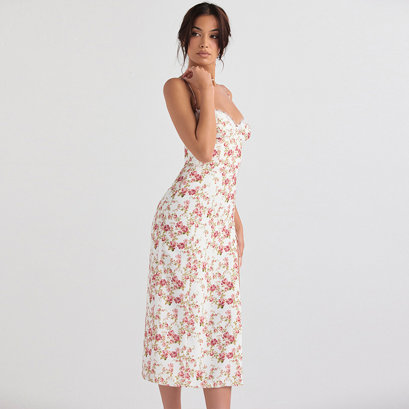 2025 새로운 국경 유럽 및 미국 여성의 섹시한 슬림 슬링 스트랩 스플릿 레이스 튜브 탑 작은 꽃 원피스