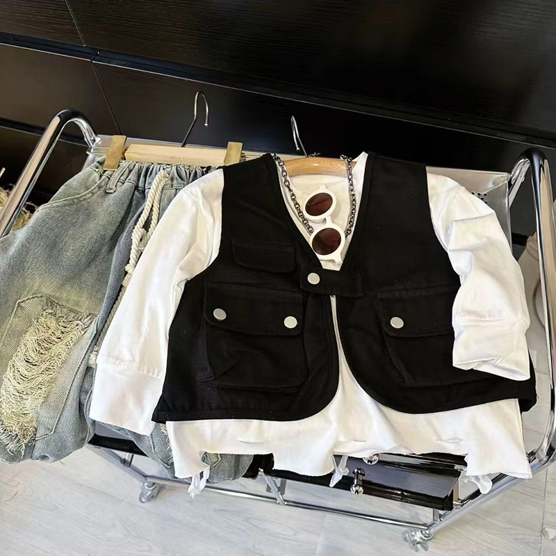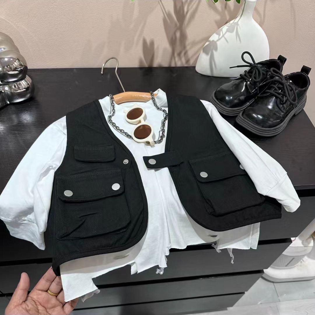 소년 조끼 2025 봄과 가을 새로운 올매치 탑 아기 중소 어린이 가짜 투피스 작업 조끼 재킷스토어 가기