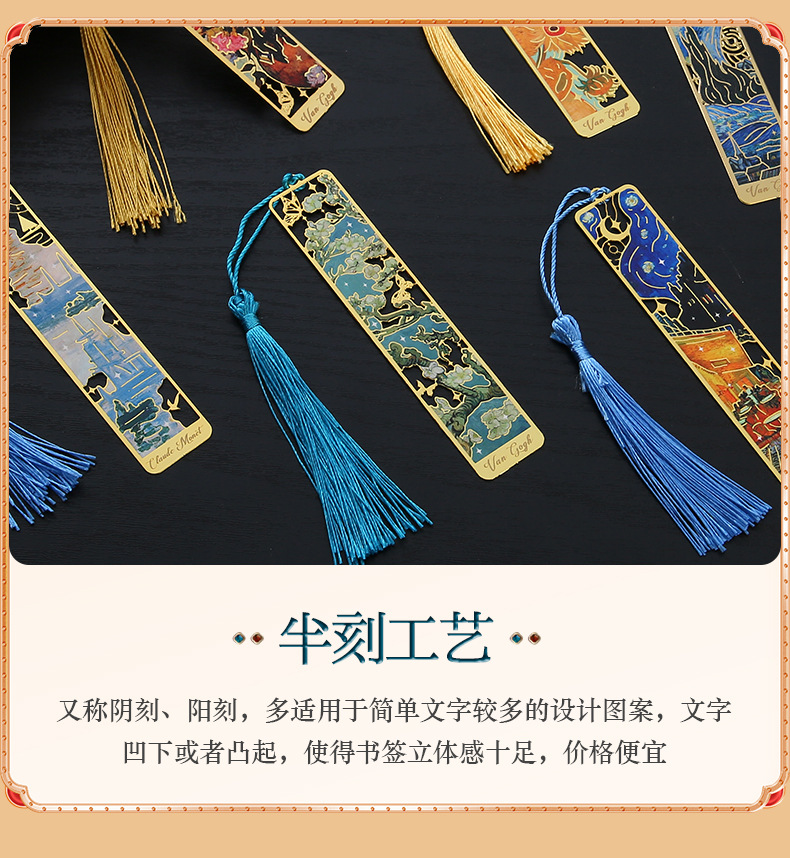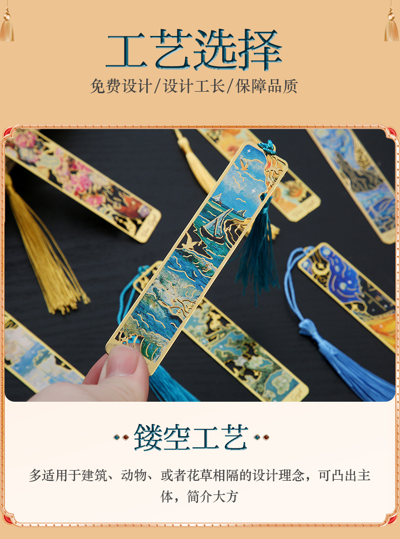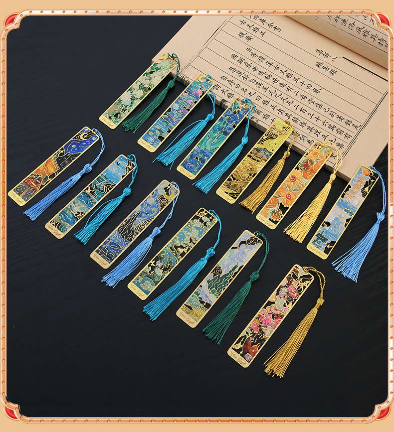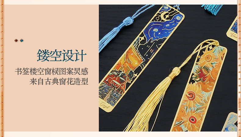재고 유화 금속 중공 책갈피 Wen Chuang 유명한 그림 학생 창조적 인 기념 선물 술 책갈피