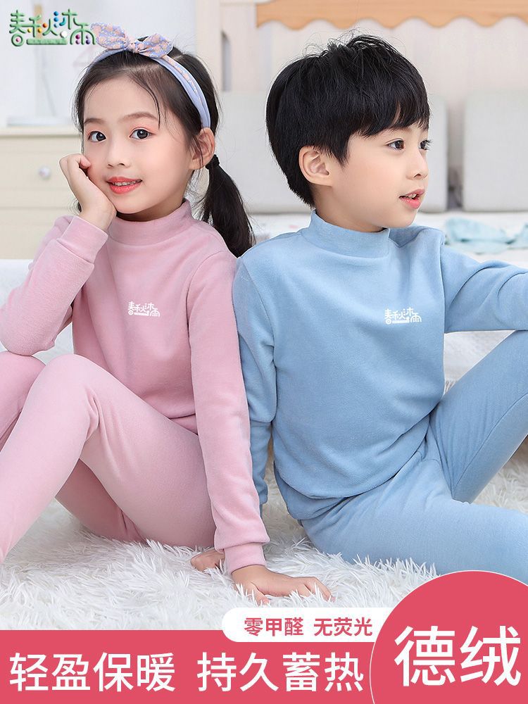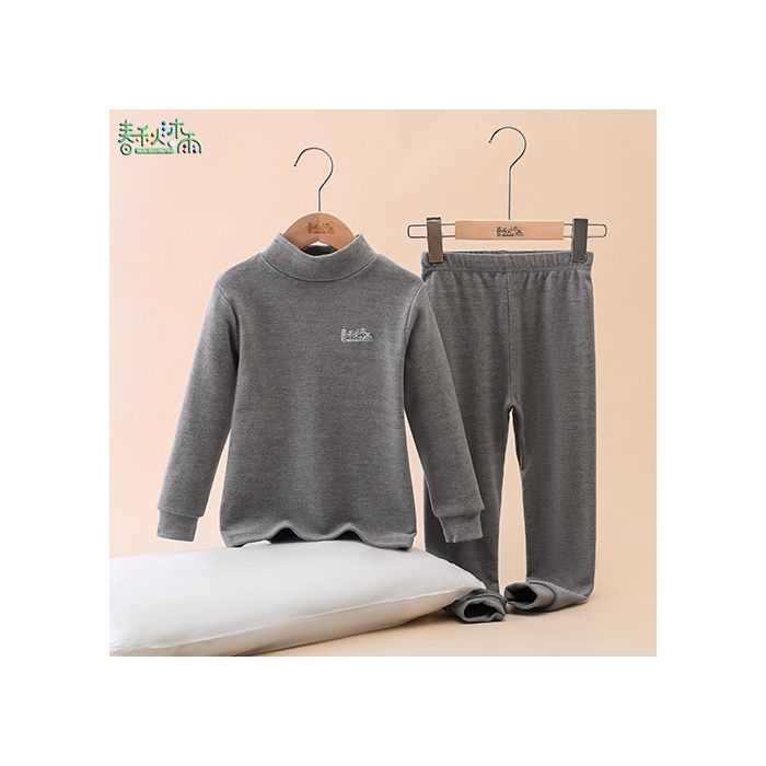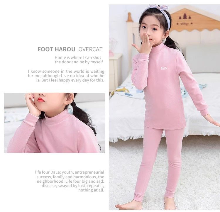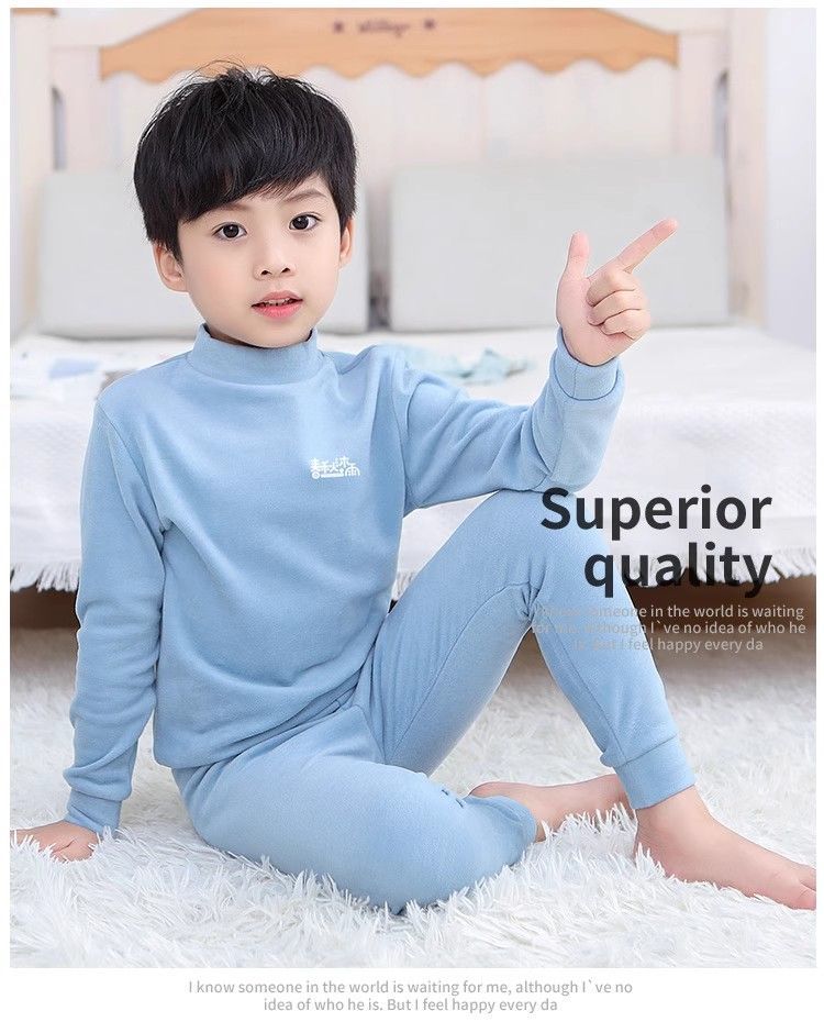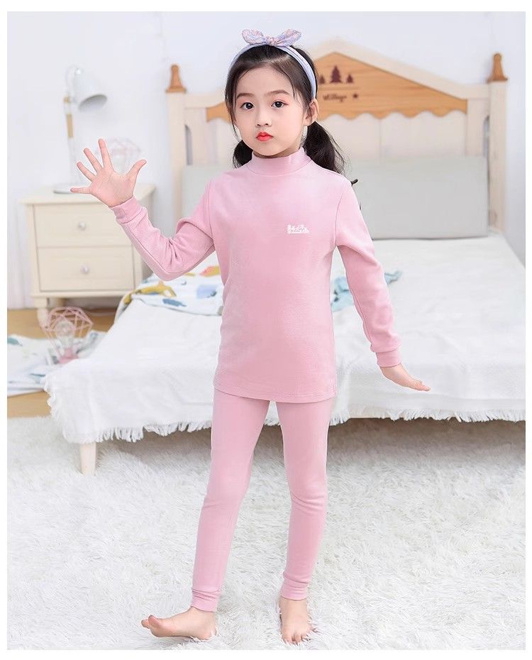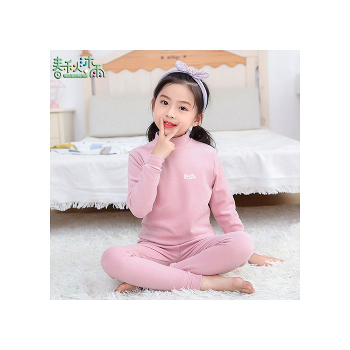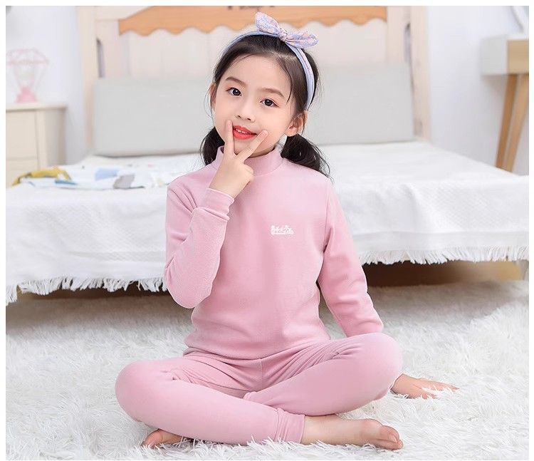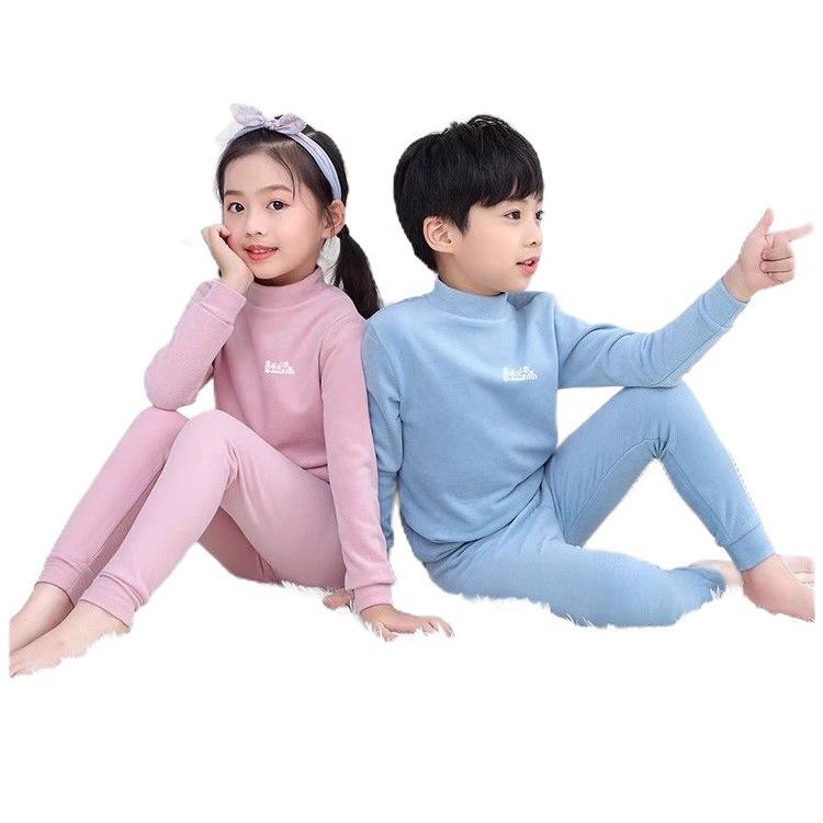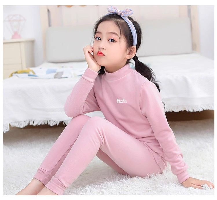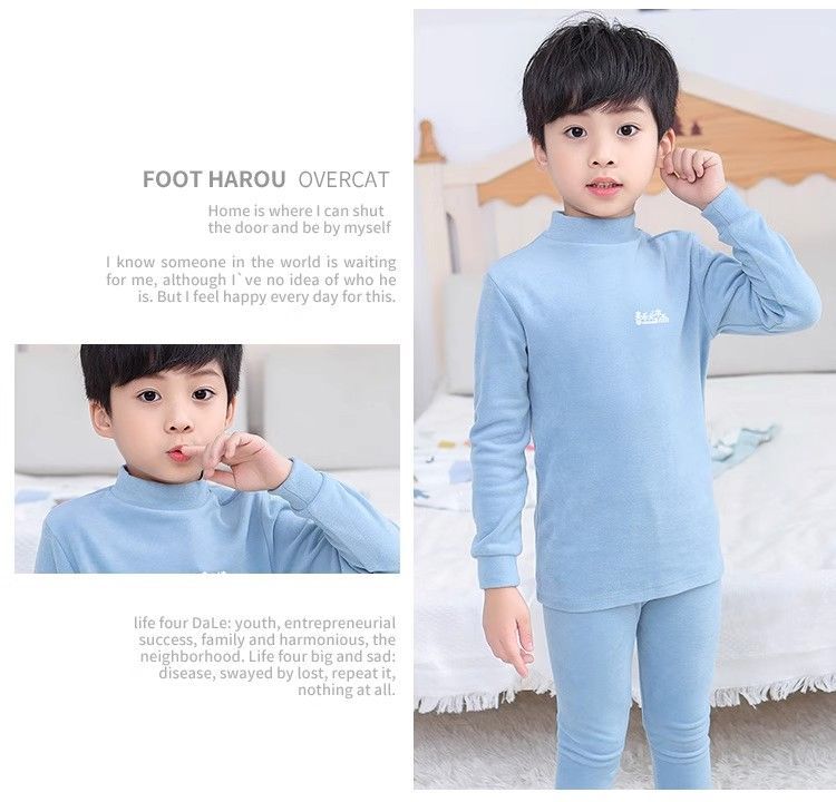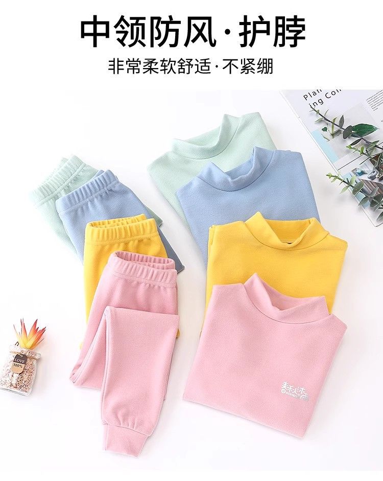반 높이 칼라 어린이 벨벳 열 속옷 세트 여성 기모 미들 칼라 대형 소년의 가을 옷 및 바지 순면