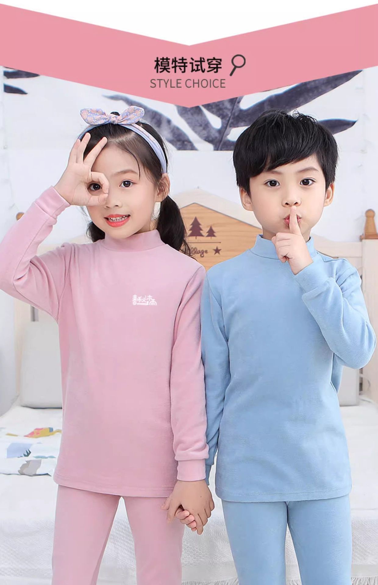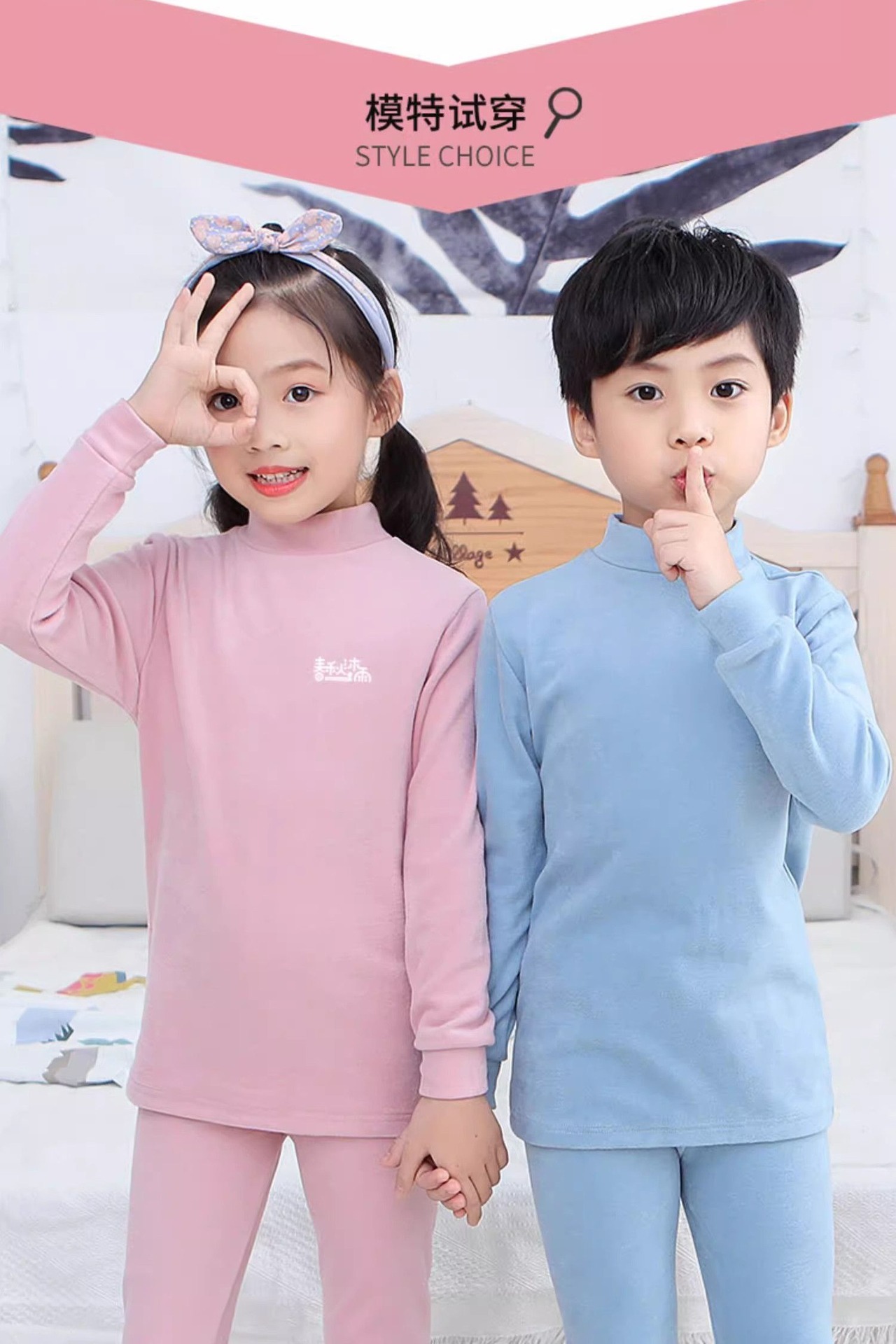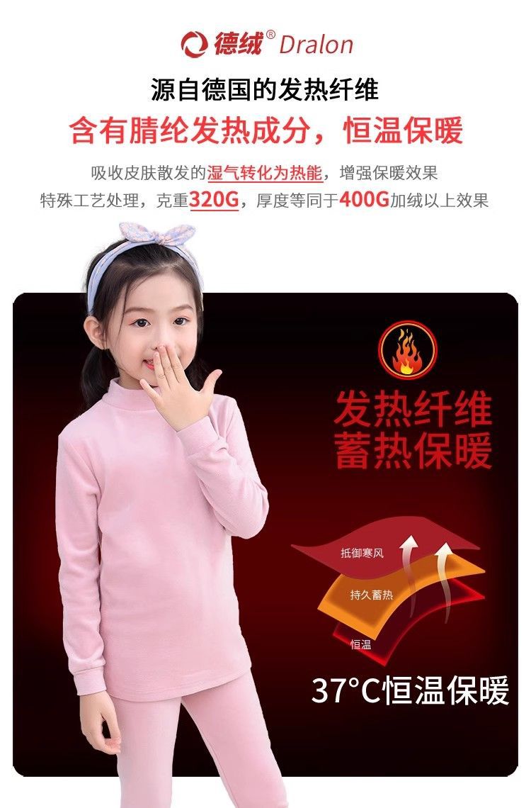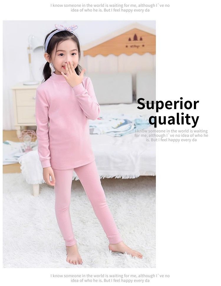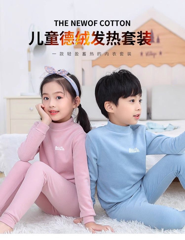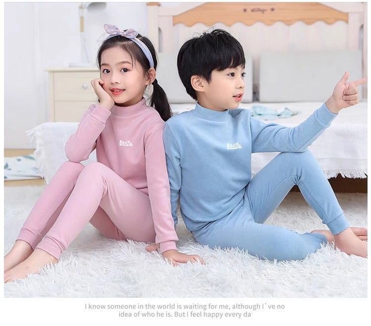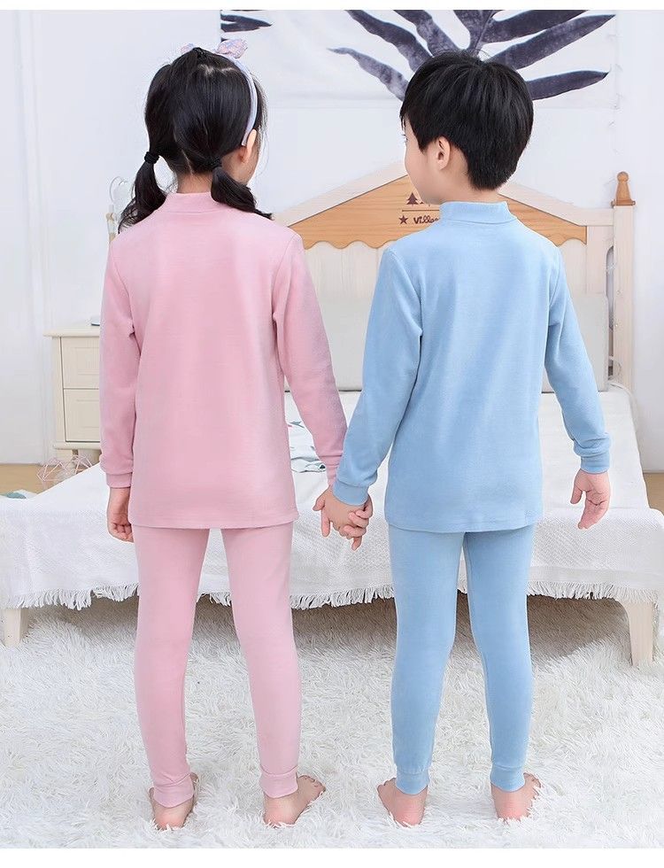 반 높이 칼라 어린이 벨벳 열 속옷 세트 여성 기모 미들 칼라 대형 소년의 가을 옷 및 바지 순면