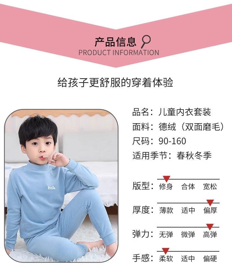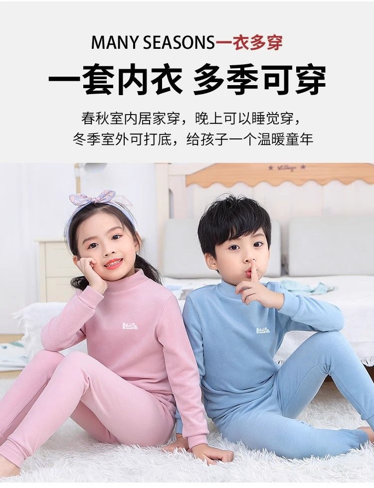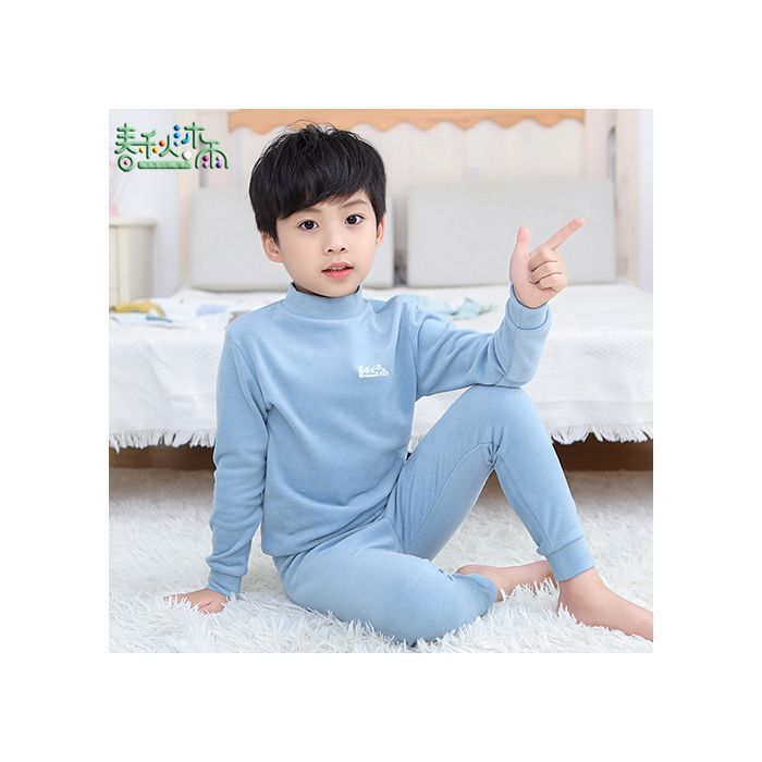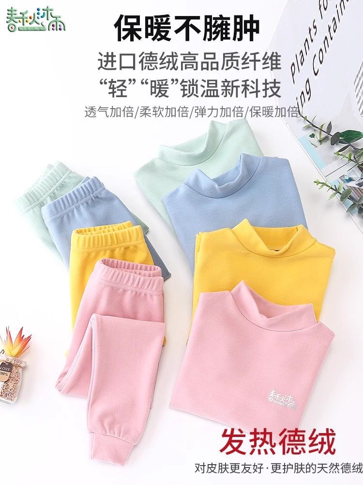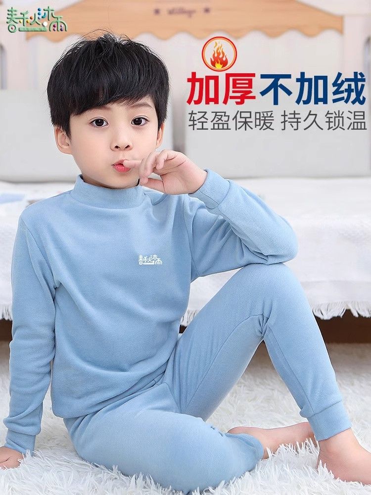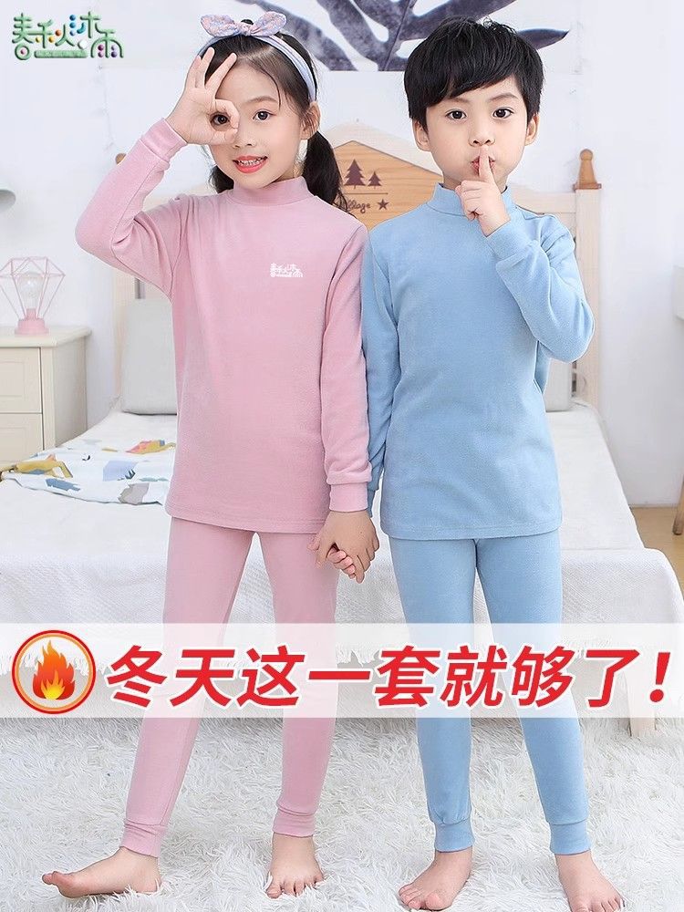 반 높이 칼라 어린이 벨벳 열 속옷 세트 여성 기모 미들 칼라 대형 소년의 가을 옷 및 바지 순면스토어 가기