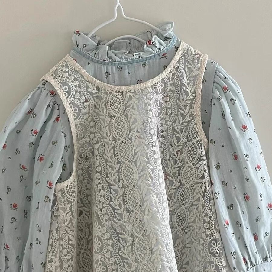 한국 아동복 소녀 원피스 봄과 가을 2025 새로운 서양식 여성 아기 한국 꽃 어린이 긴팔 치마스토어 가기