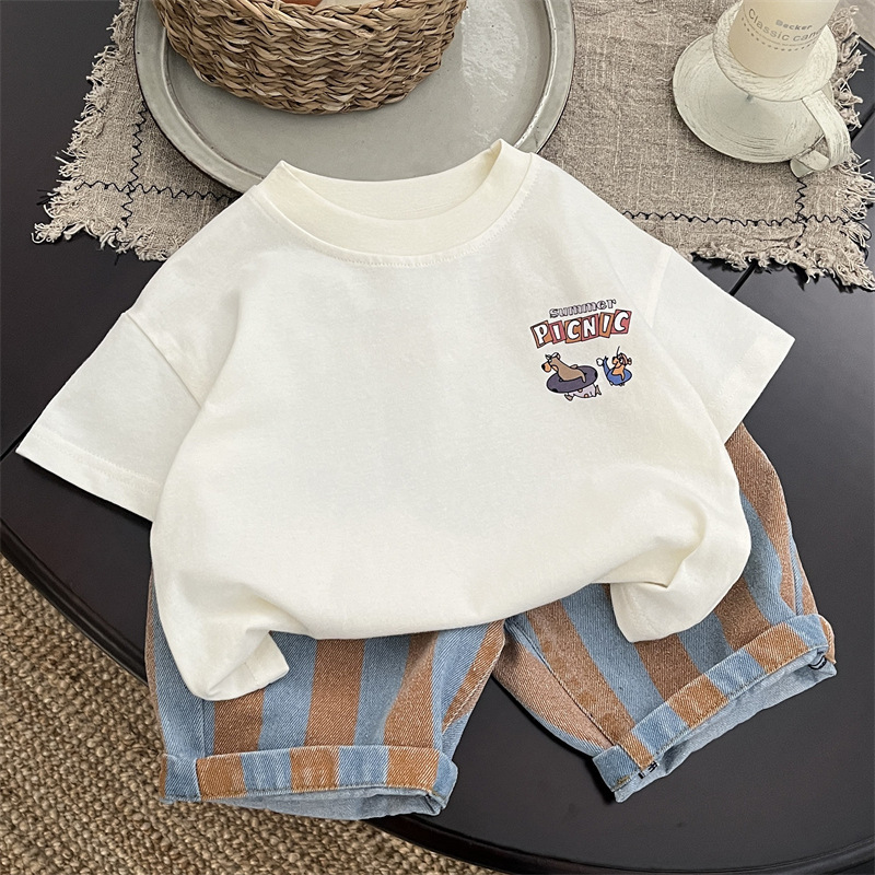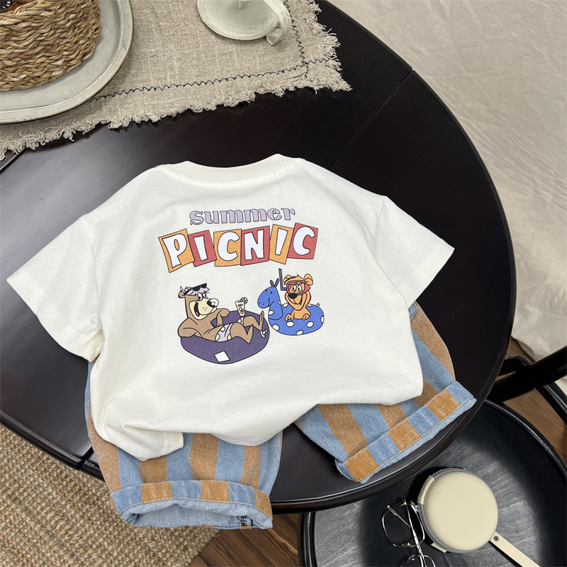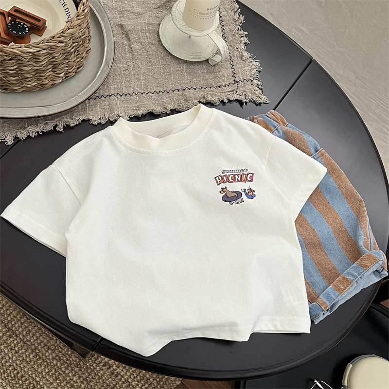2025 여름 어린이 면화 만화 인쇄 캐주얼 티셔츠 0-6 세 소년 서양 스타일 짧은 소매 반 소매스토어 가기