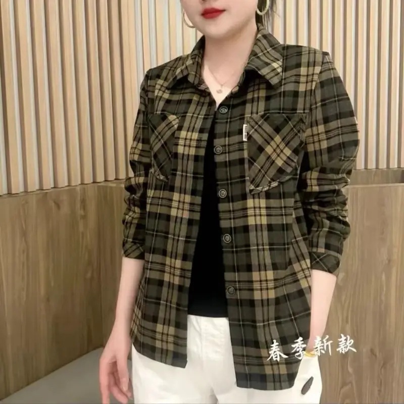 [원래 품질] 새로운 2025 봄 가을 셔츠 재킷 조커 선 스크린 슬림 격자 무늬 외주 폭스토어 가기