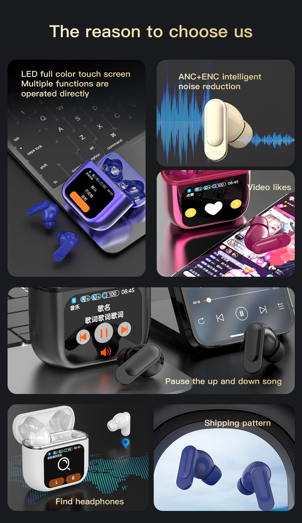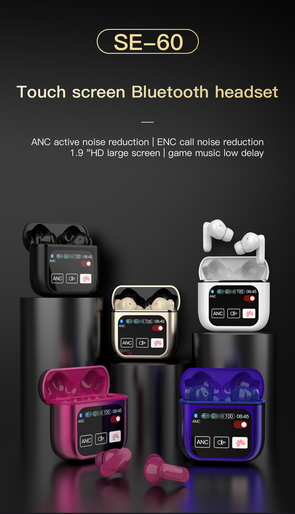 SE60 스마트 LCD 터치 스크린 블루투스 헤드셋 큰 전원 소음 감소 터치 스크린 무선 헤드셋 대외 무역 국경스토어 가기