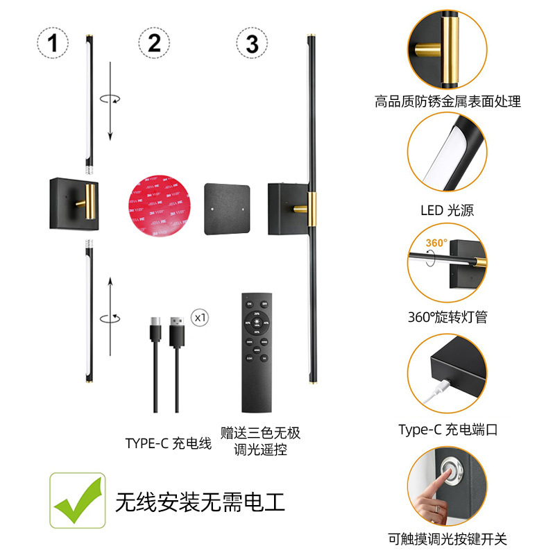 국경 간 폭발 충전 배선없는 벽 램프 긴 내구성 3 색 디밍 창조적 인 장식 벽 램프 소스 공장스토어 가기
