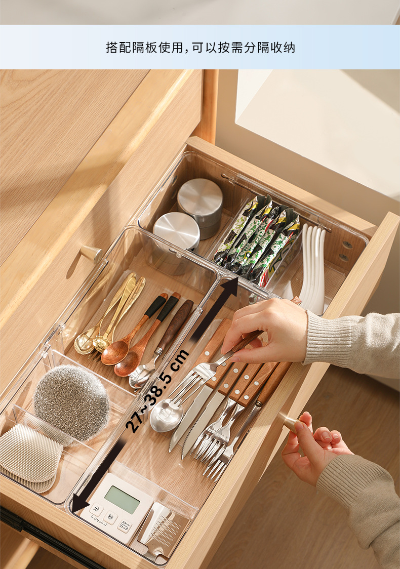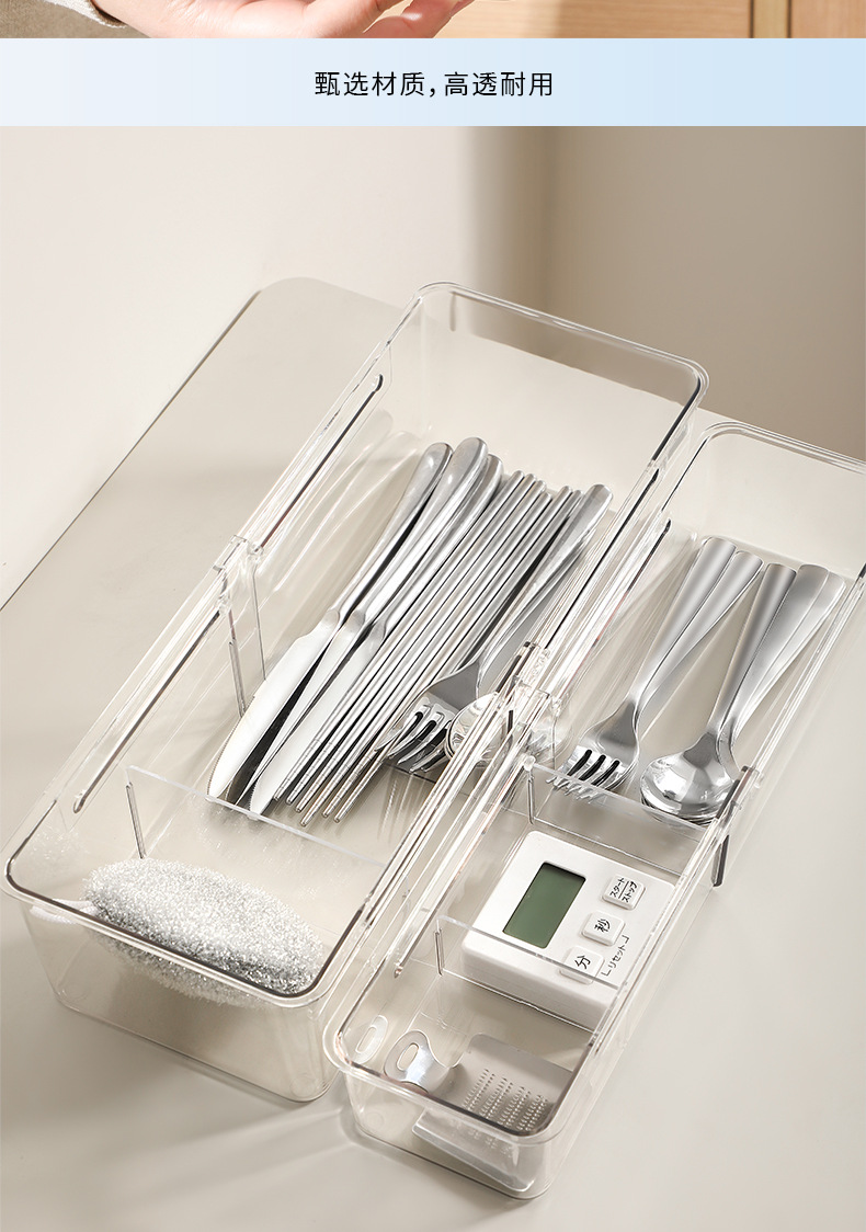 망원경 투명 식기 저장 상자 캐비닛 분류 적합 상자 사무실 문구 화장품 젓가락 저장 파티션 상자스토어 가기