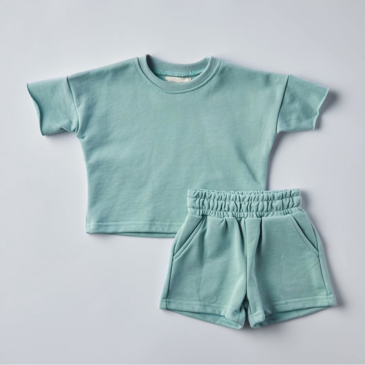 국경 간 여름 소년과 소녀 반팔 티셔츠 느슨한 캐주얼 반팔 세트 어린이 캐주얼 느슨한 운동복 2 조각