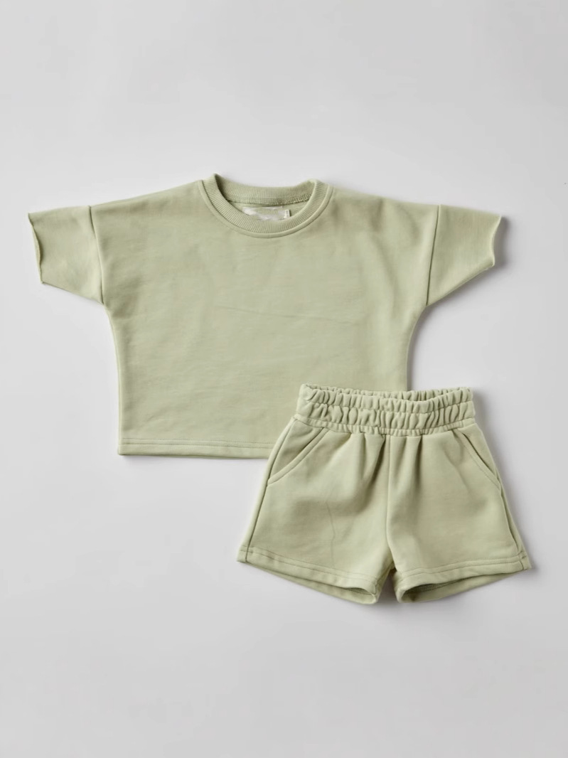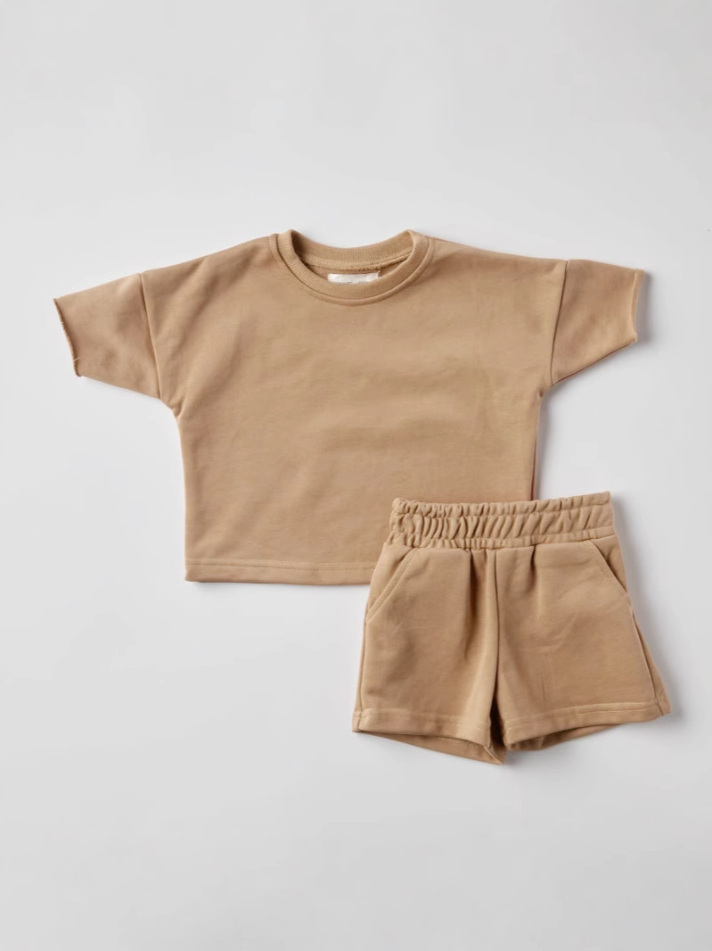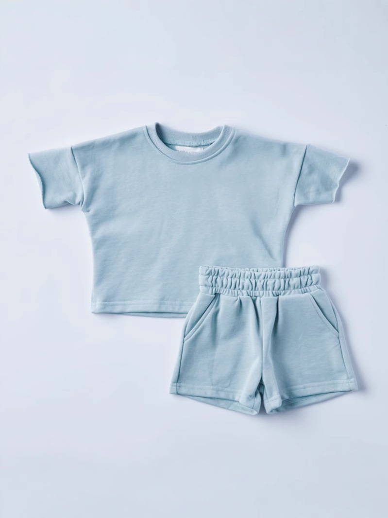 국경 간 여름 소년과 소녀 반팔 티셔츠 느슨한 캐주얼 반팔 세트 어린이 캐주얼 느슨한 운동복 2 조각스토어 가기