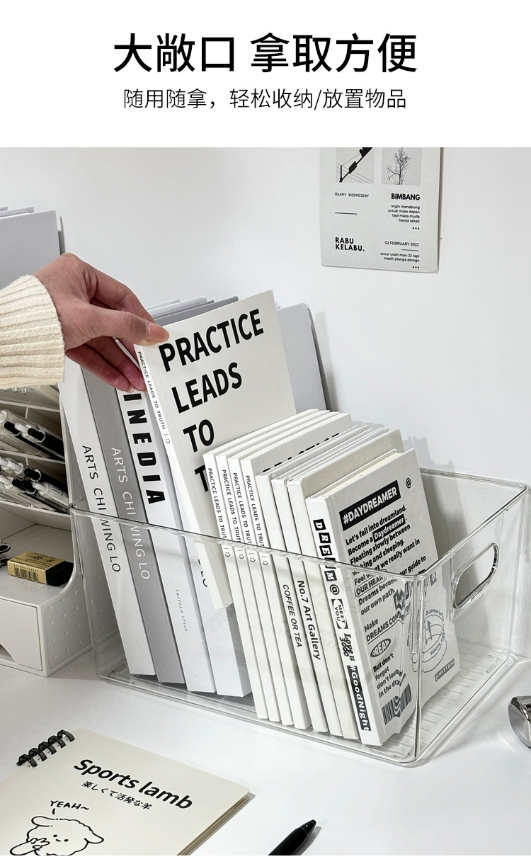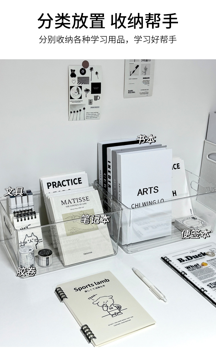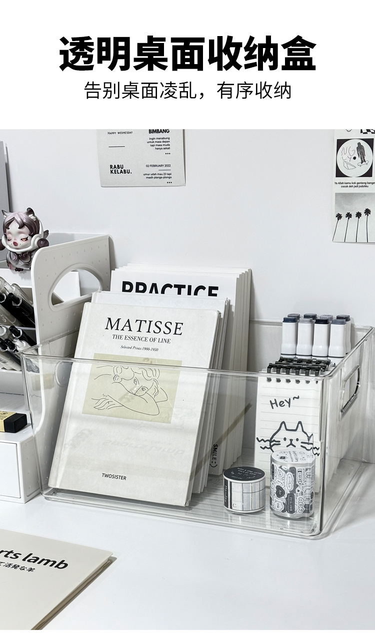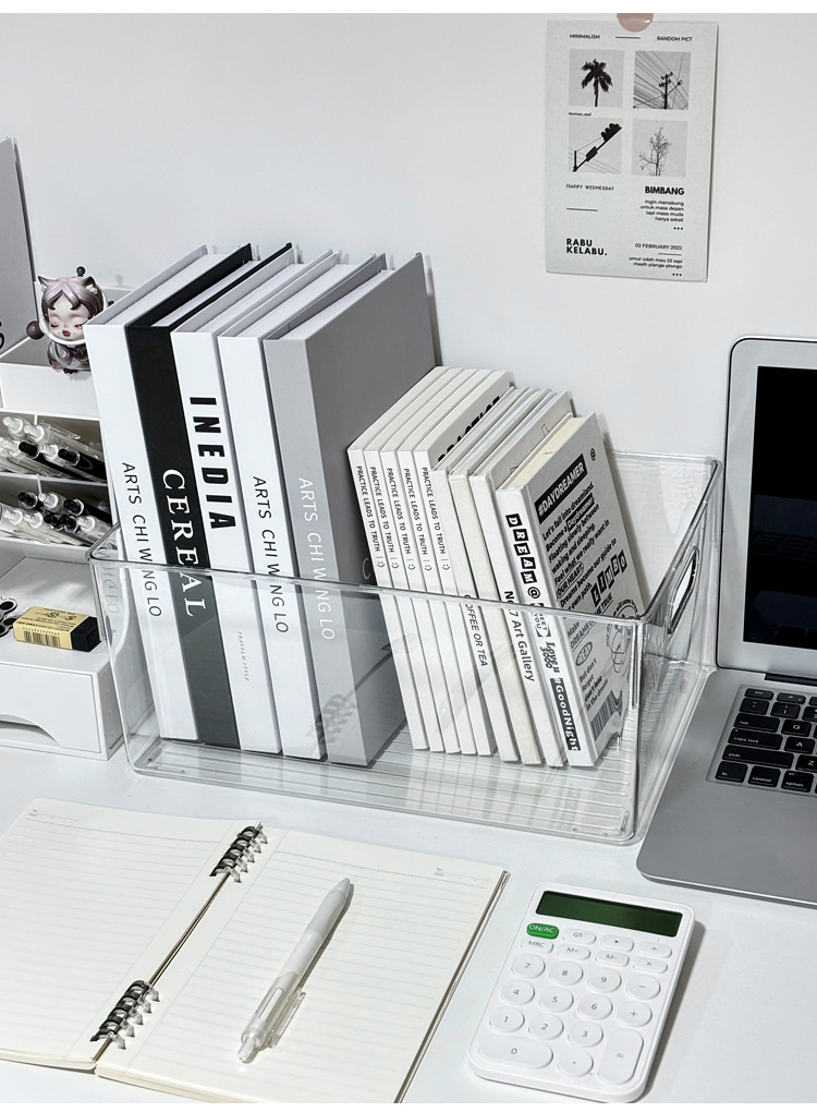 투명 기숙사 책상 문구 책 저장 랙 사무실 파일 바구니 아크릴 데스크탑 저장 상자
