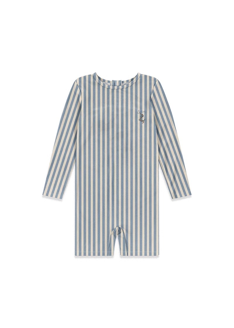 덴마크 봄 여름 아기 소년 수영복 수영 트렁크 어린이 블루 스트라이프 원피스 지퍼 수영복 빠른 건조 태양 보호