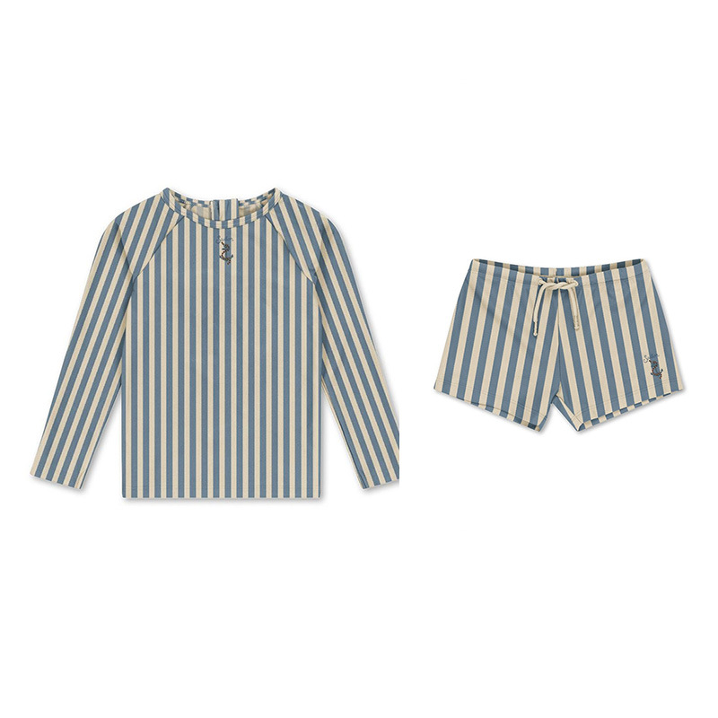 덴마크 봄 여름 아기 소년 수영복 수영 트렁크 어린이 블루 스트라이프 원피스 지퍼 수영복 빠른 건조 태양 보호스토어 가기