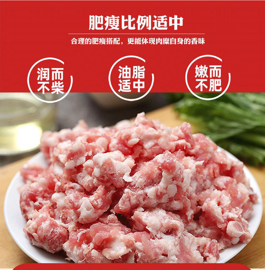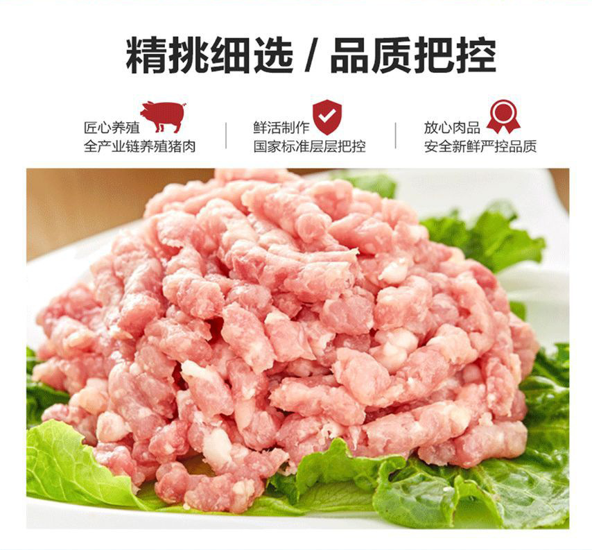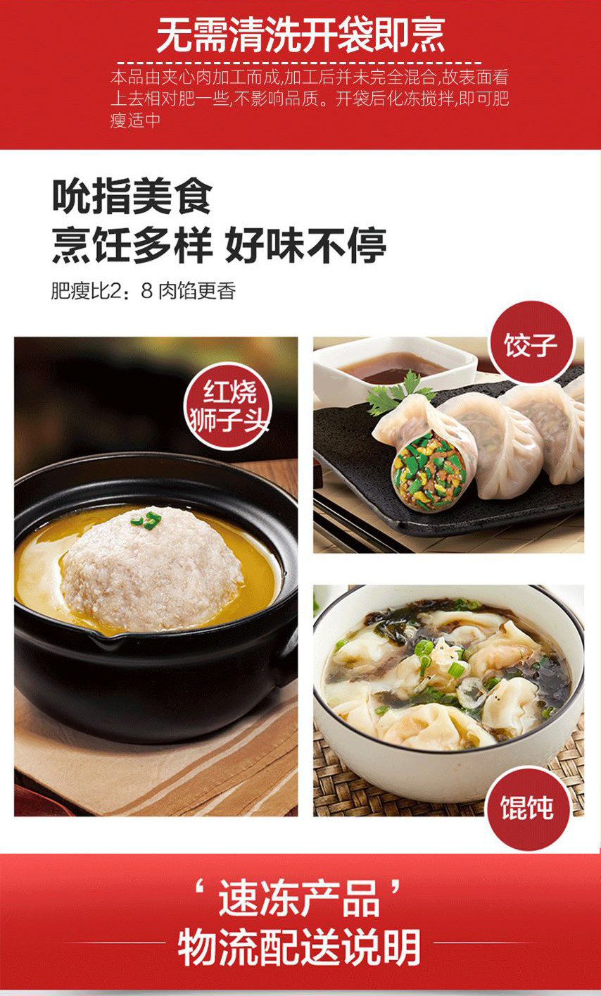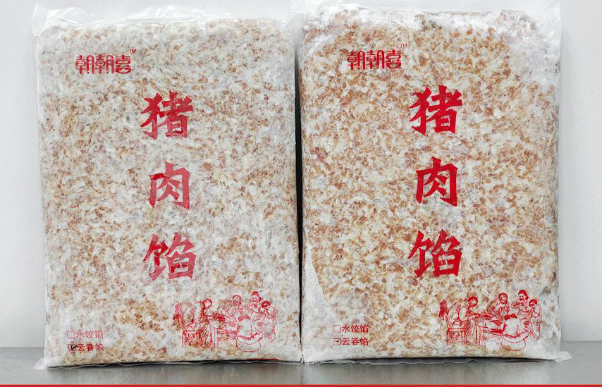 고기 필링이 들어간 혼안만두, 고기 필링이 들어간 워터 만두, 광둥식 워터 만두, 급속 냉동 필링, 돼지고기 필링