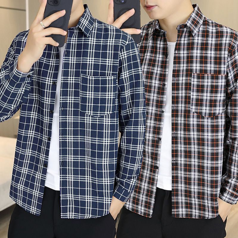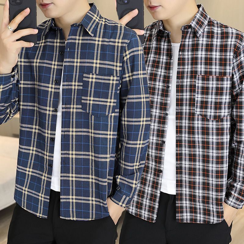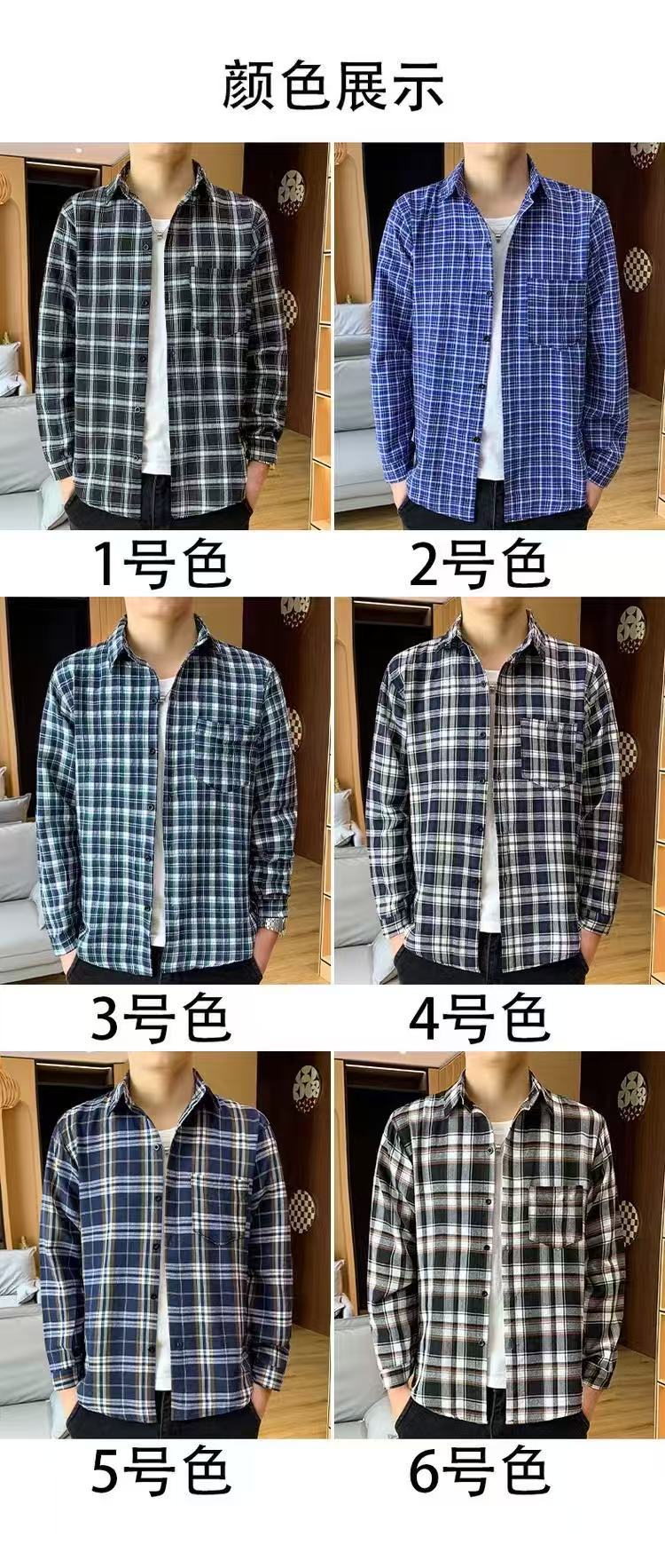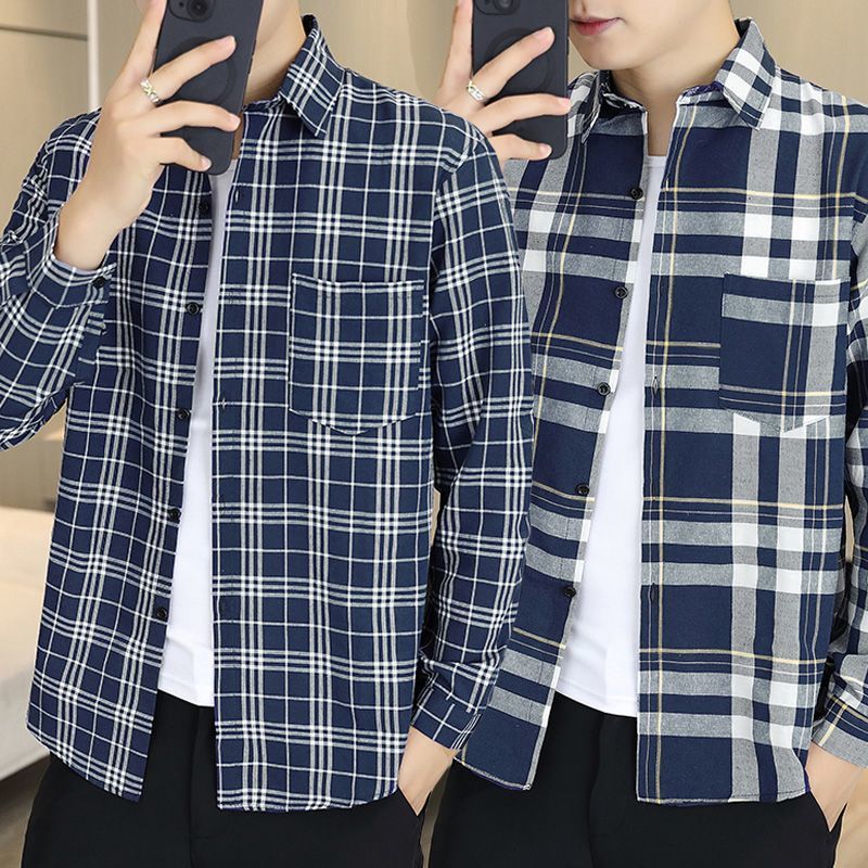 【원격 지역 제외 지역은 무료 배송】남성용 긴팔 셔츠, 중년층을 위한 짙은 체크무늬, 루즈한 라펠, 슬림핏 셔츠스토어 가기