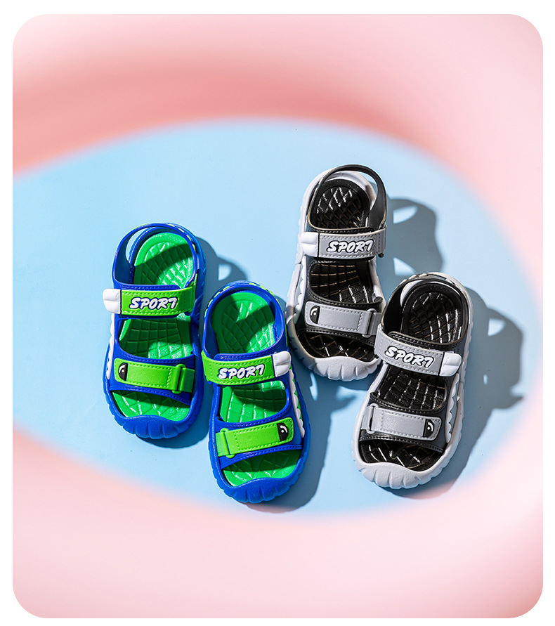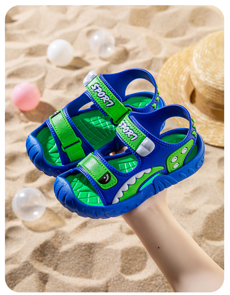 [폭발 추천] 어린이 샌들 소년 여름 귀여운 만화 학생, 미끄럼 방지 비치 샌들 남성 착용