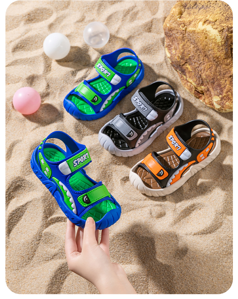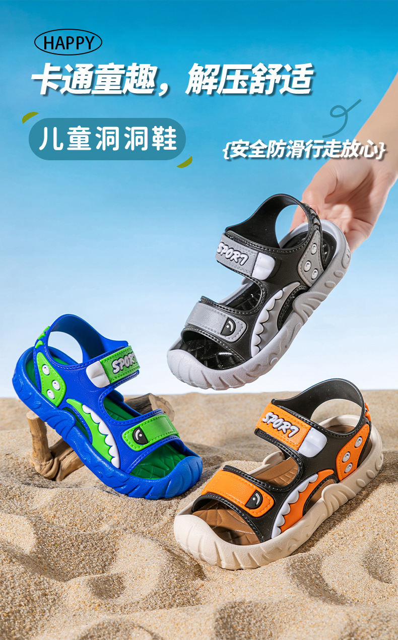 [폭발 추천] 어린이 샌들 소년 여름 귀여운 만화 학생, 미끄럼 방지 비치 샌들 남성 착용스토어 가기