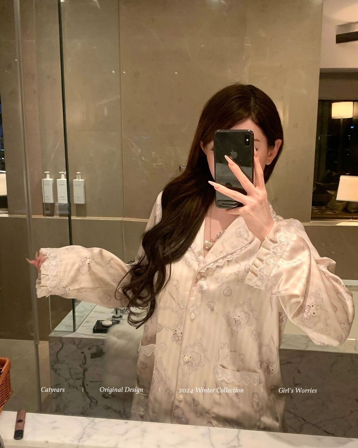 얼음과 눈 실크 잠옷 여성의 봄과 가을 새로운 하이 엔드 인쇄 새틴 파자마 홈 옷 투피스 의상 3스토어 가기