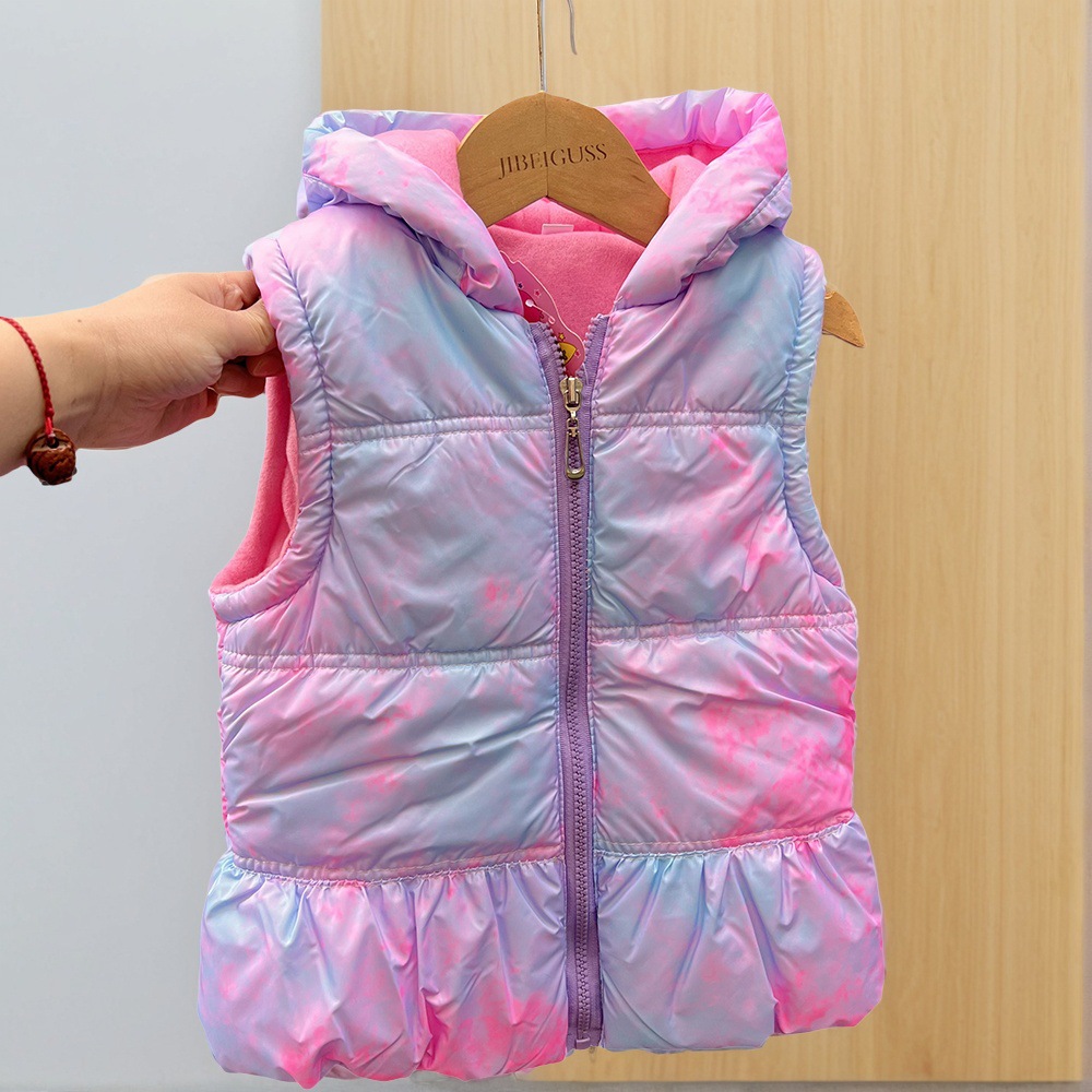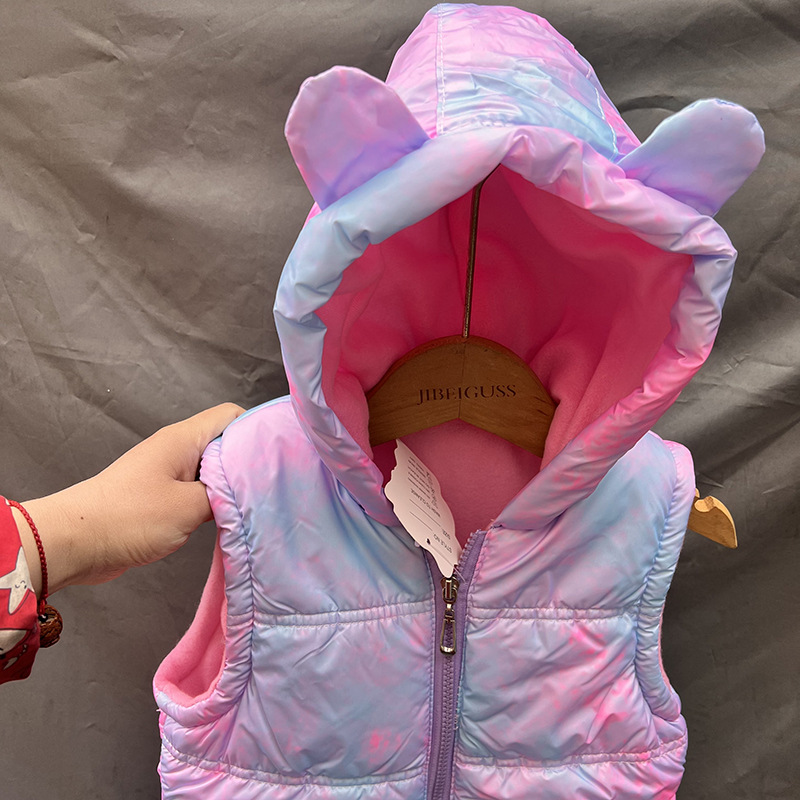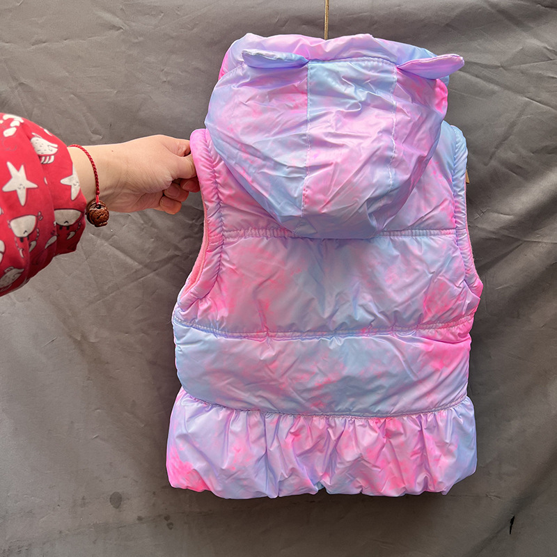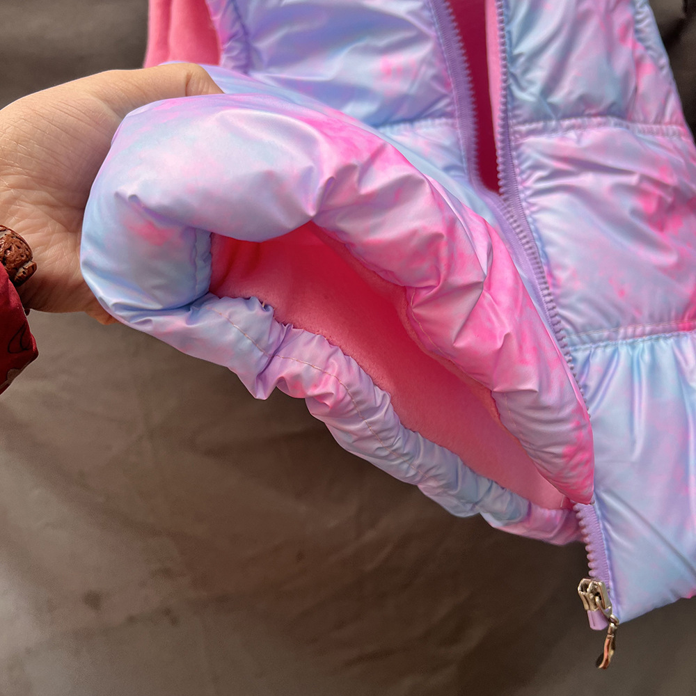 2025 새로운 국경 아기 소녀 다운 코튼 조끼 어린이 두꺼운 기모 양복 조끼 후드 캔디 컬러 조끼