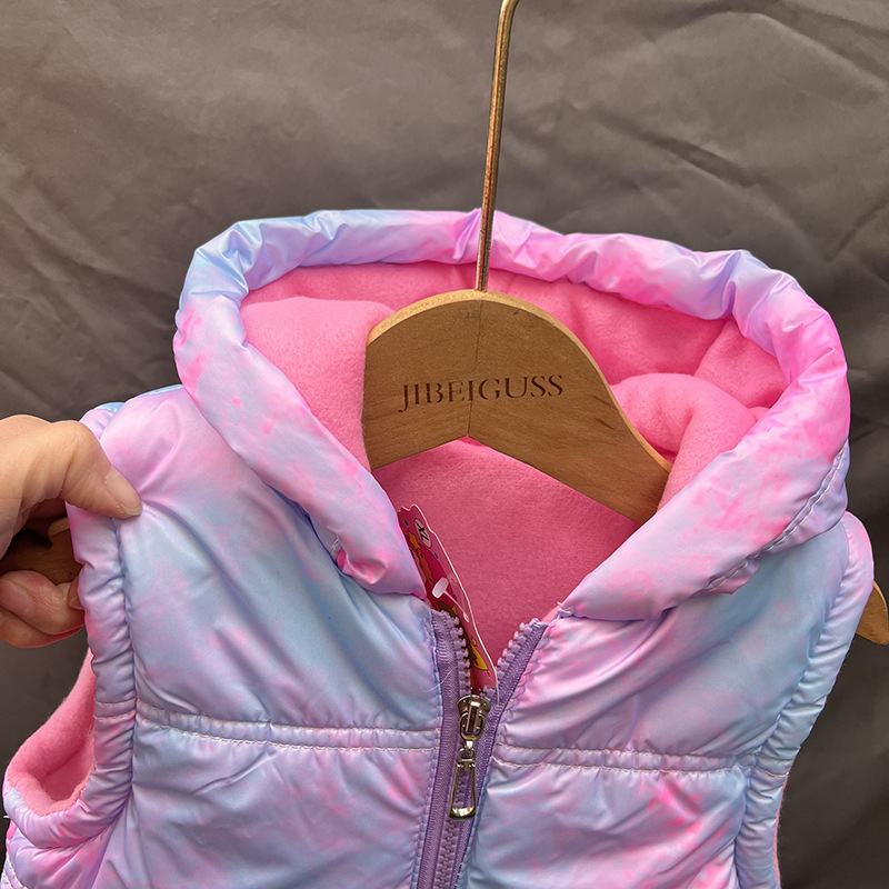 2025 새로운 국경 아기 소녀 다운 코튼 조끼 어린이 두꺼운 기모 양복 조끼 후드 캔디 컬러 조끼스토어 가기