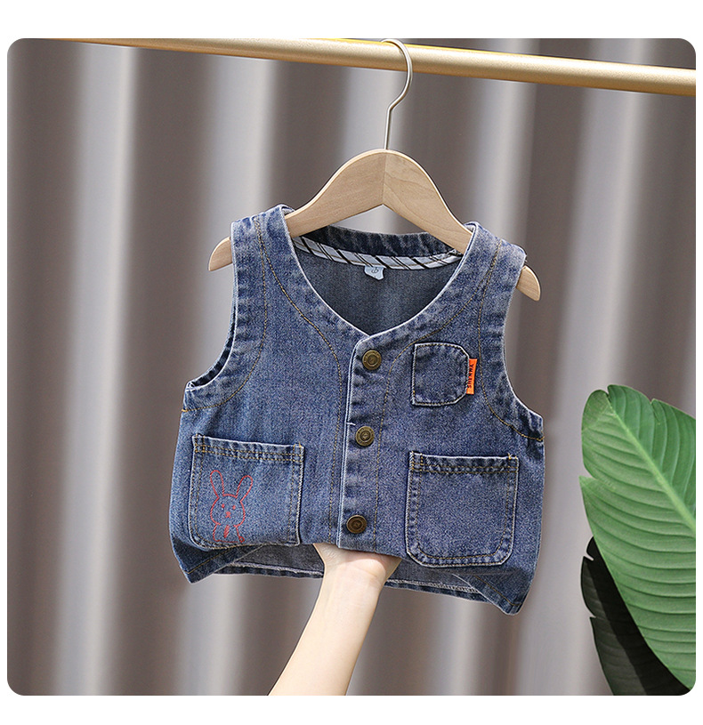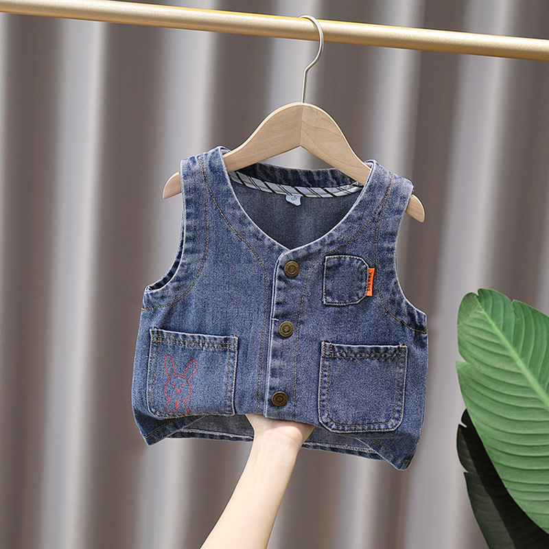 어린이 데님 waistcoat 2025 년 새로운면 아기 올매치 조끼, 외국 스타일 잘 생긴 조끼 착용