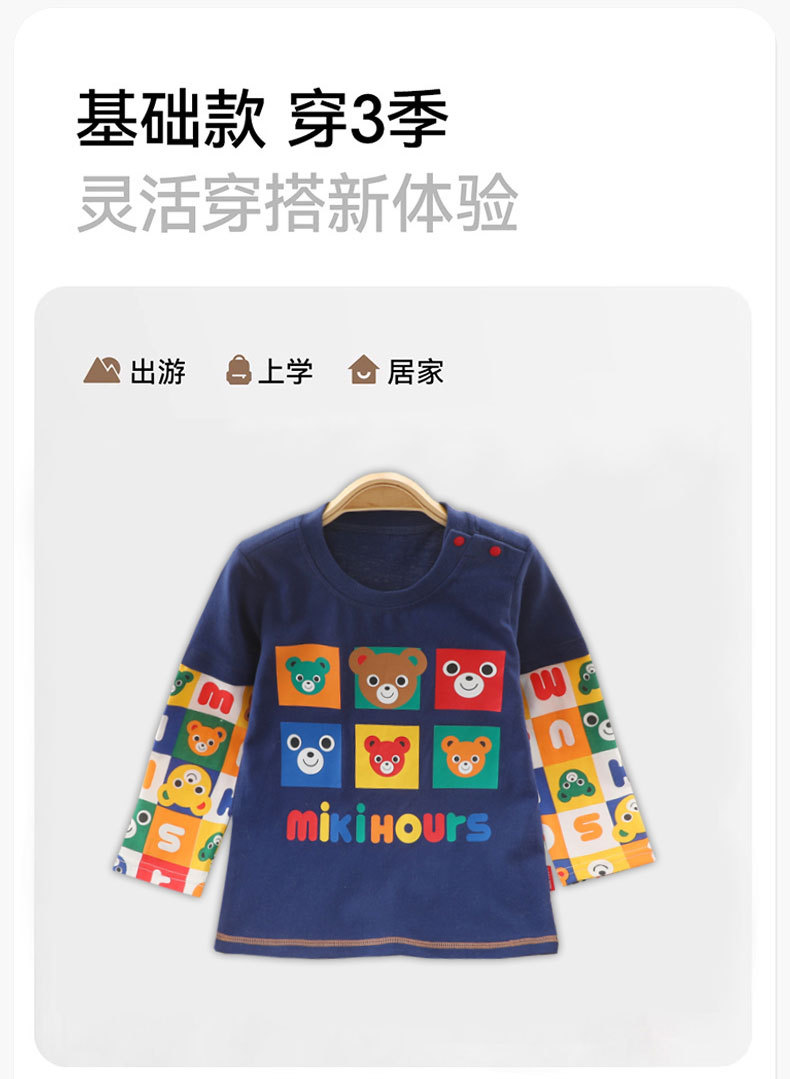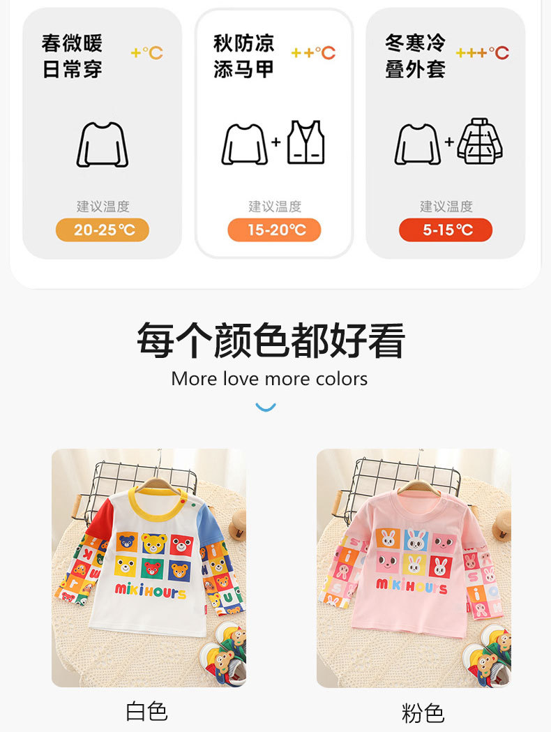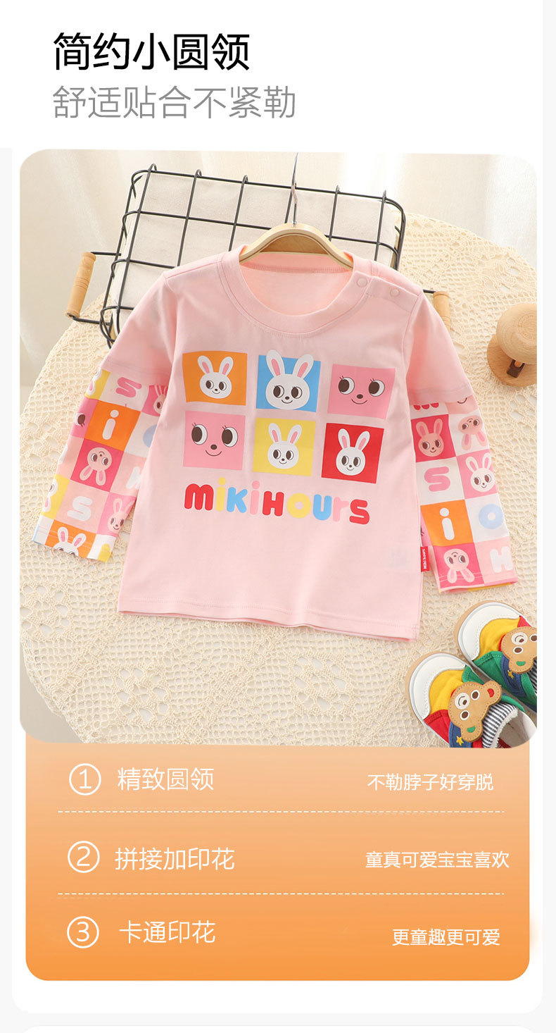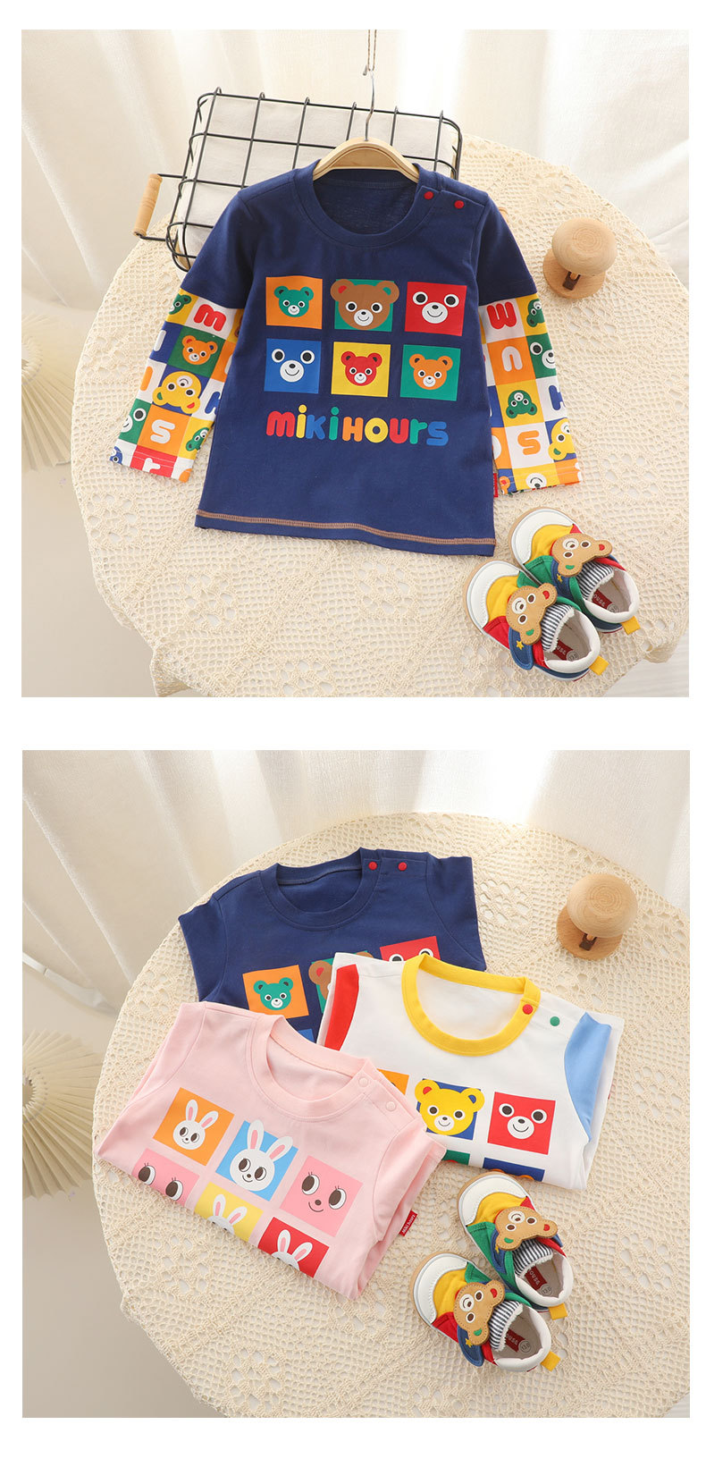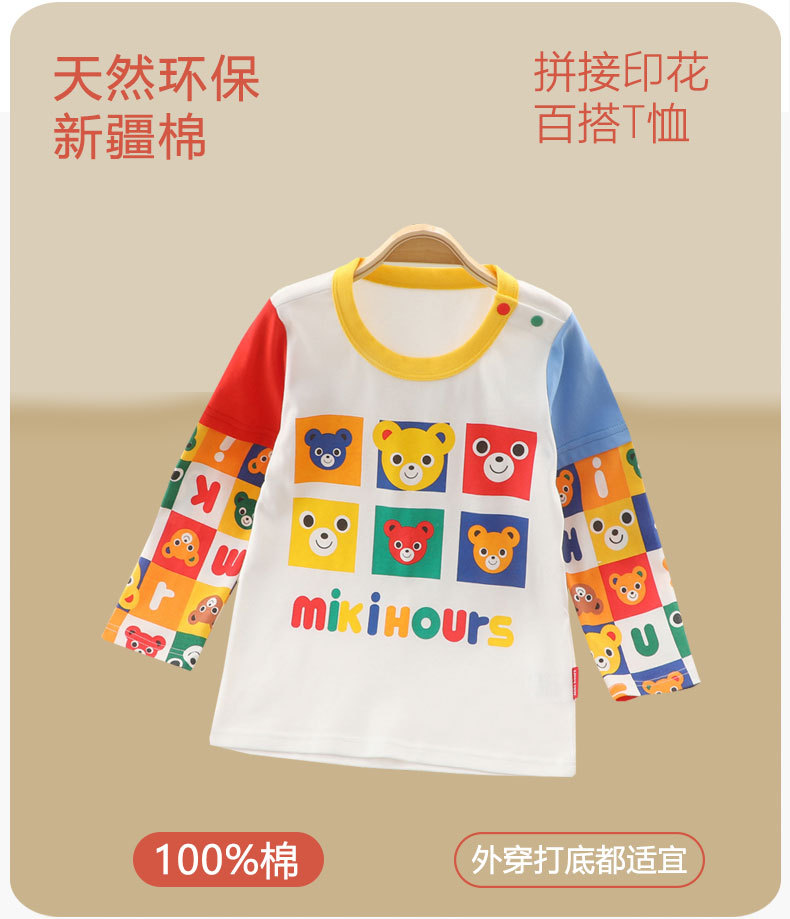 mikihours 봄 어린이 만화 긴팔 티셔츠 순면 스플라이스 슬리브 프린트 탑 아동용 긴팔 티셔츠스토어 가기