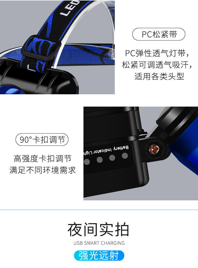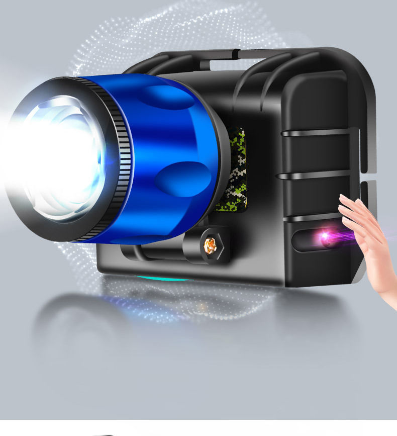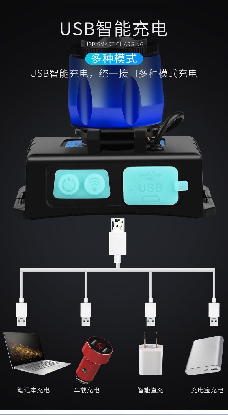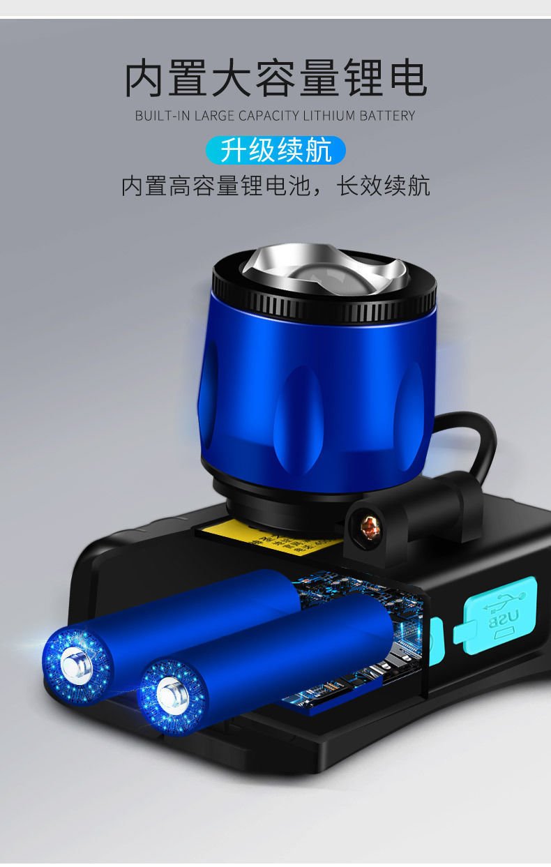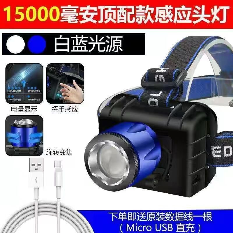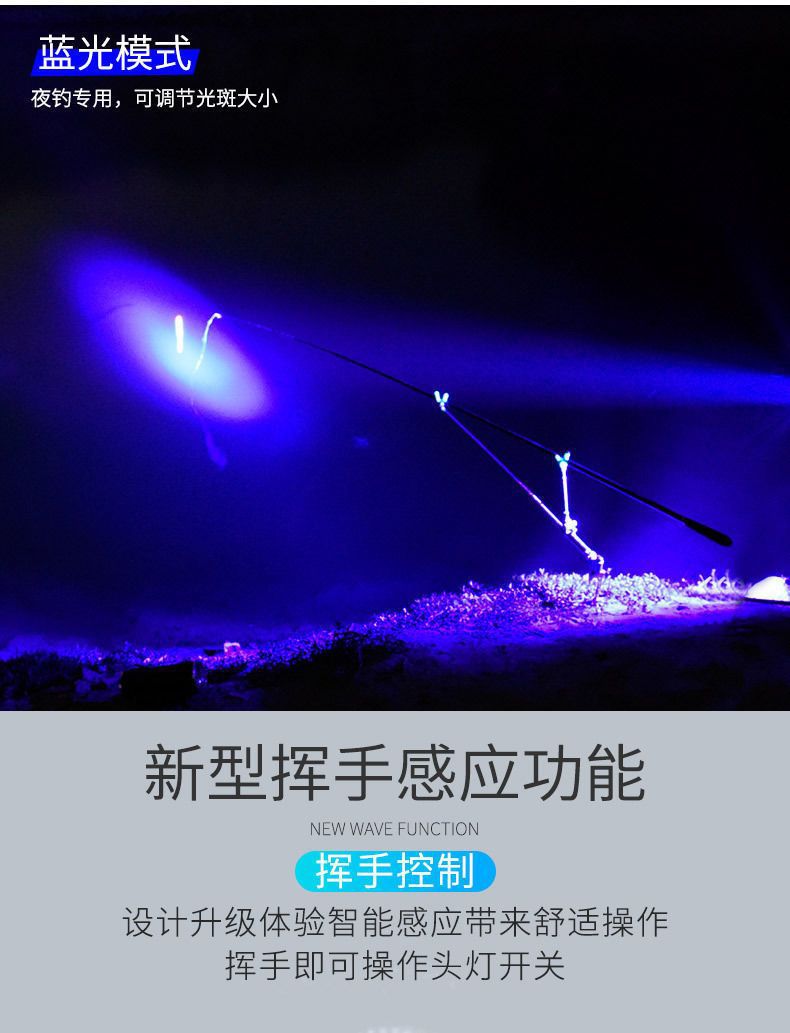 유도 헤드 라이트 슈퍼 밝은 충전식 야간 낚시 라이트 야외 헤드라이트 블루 화이트 라이트 슈퍼 긴 대기 낚시 라이트