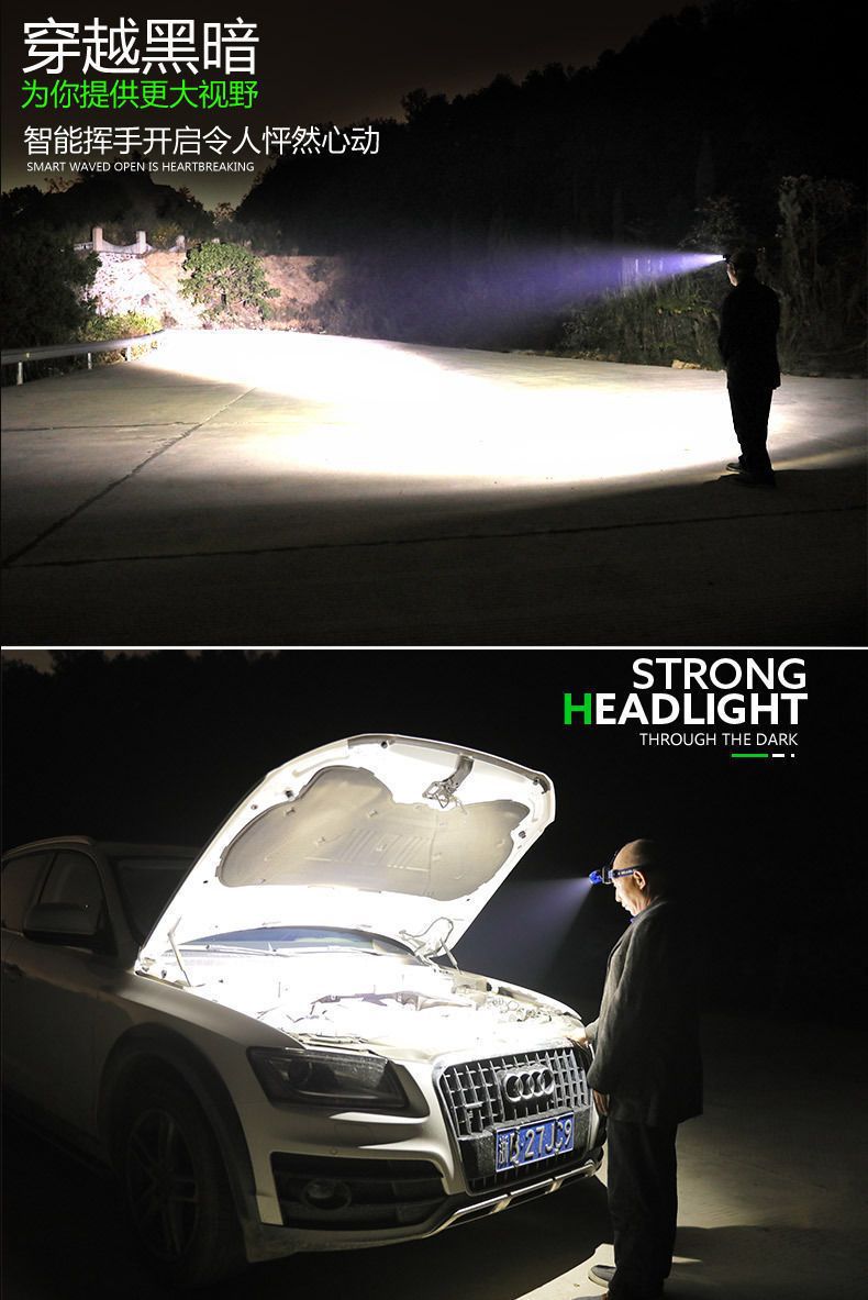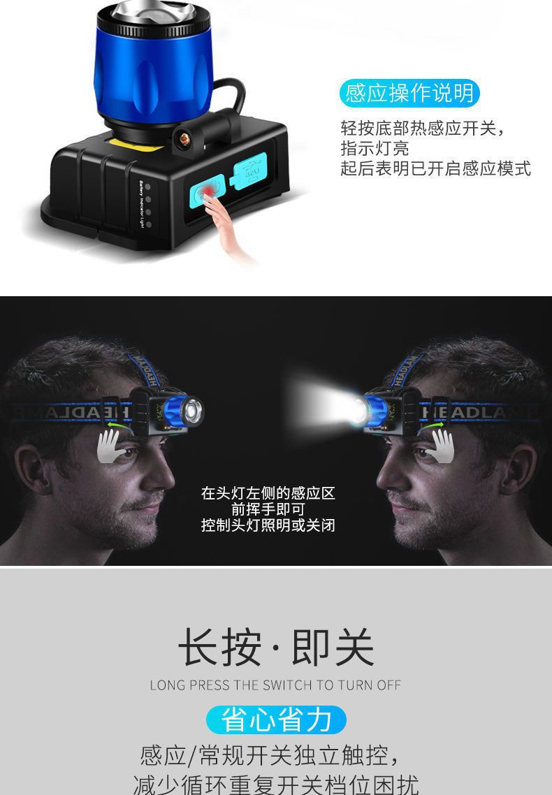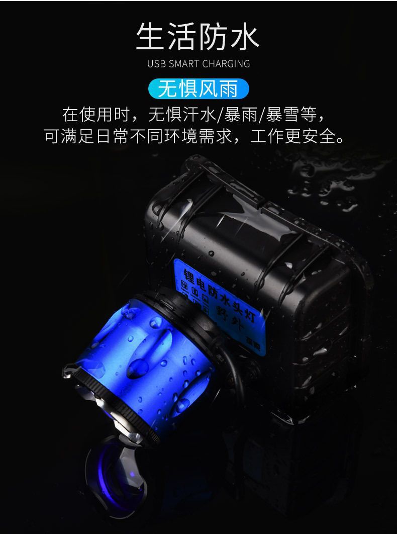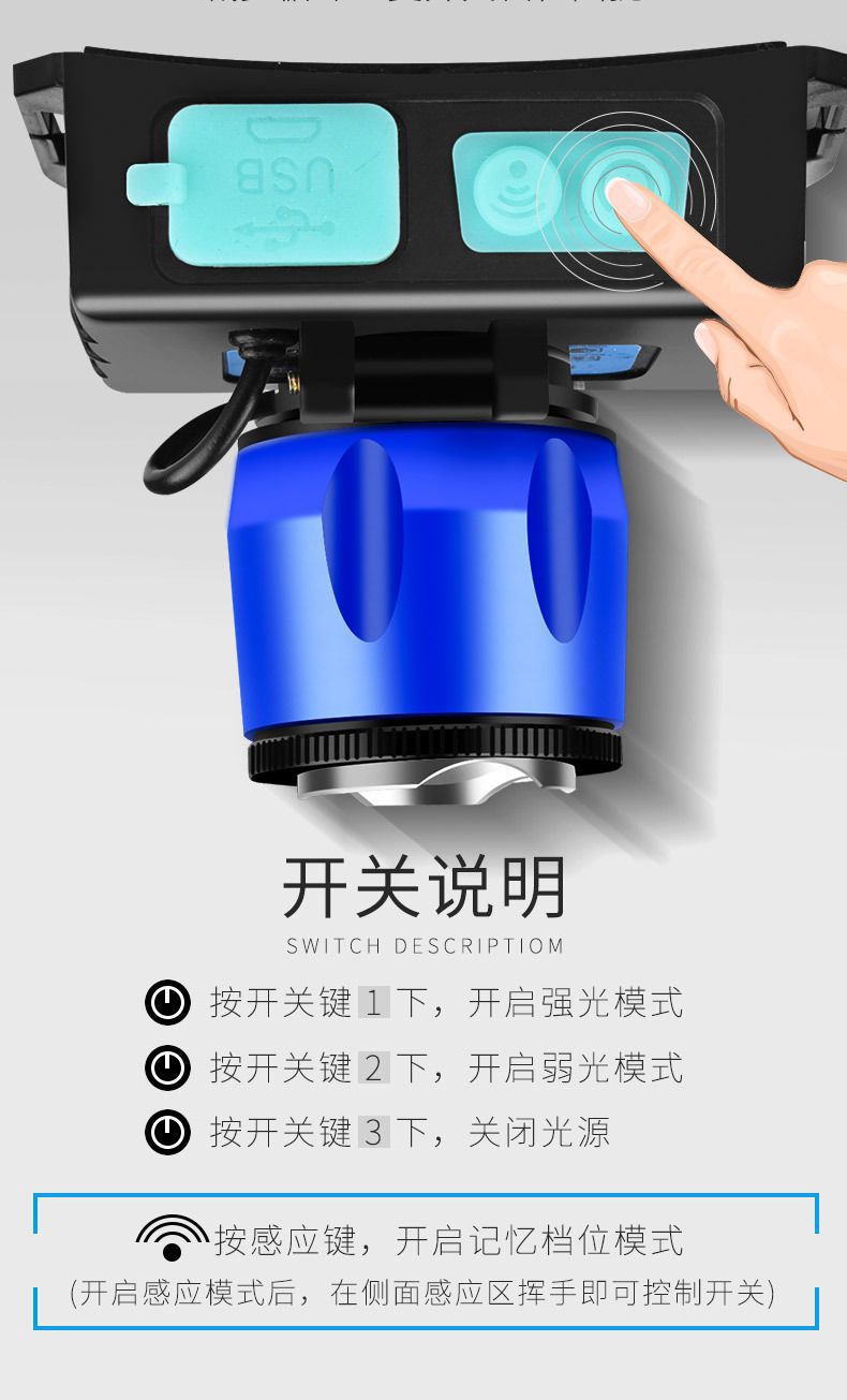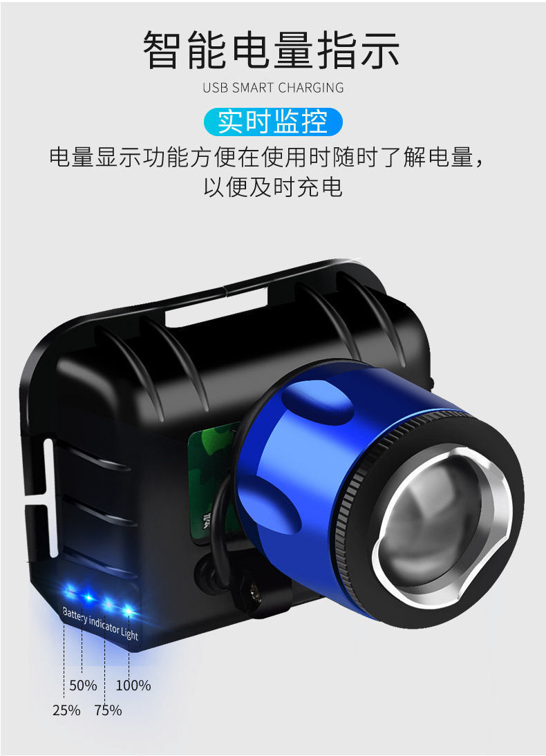 유도 헤드 라이트 슈퍼 밝은 충전식 야간 낚시 라이트 야외 헤드라이트 블루 화이트 라이트 슈퍼 긴 대기 낚시 라이트