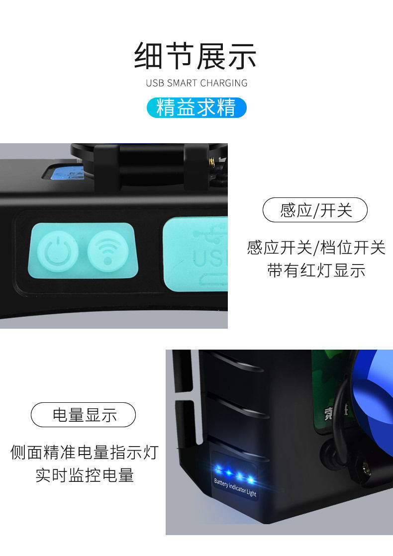 • 흰색 + 파란색 이중 조명 스트립 유도 이중 리튬 배터리