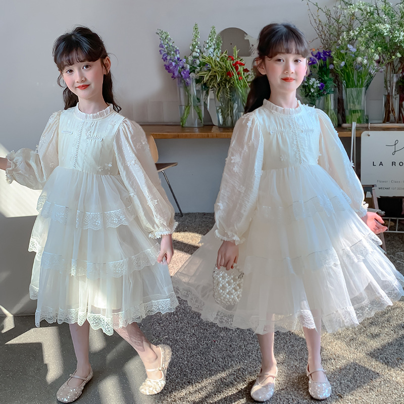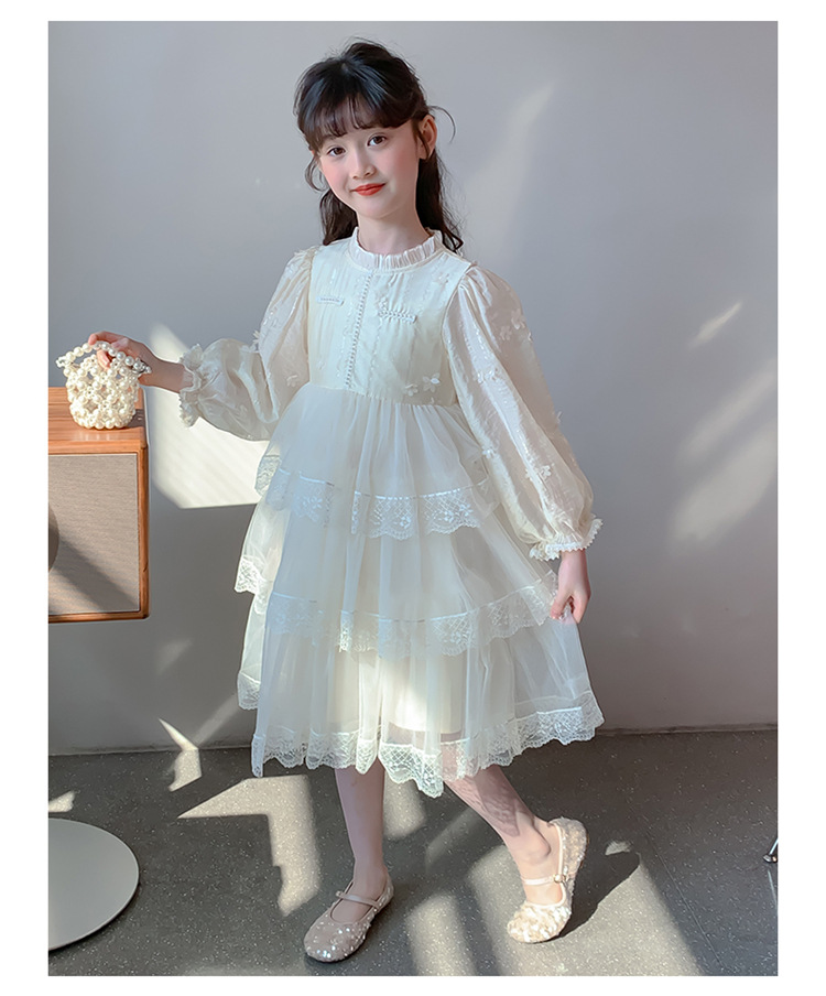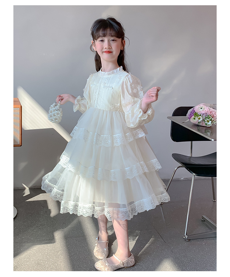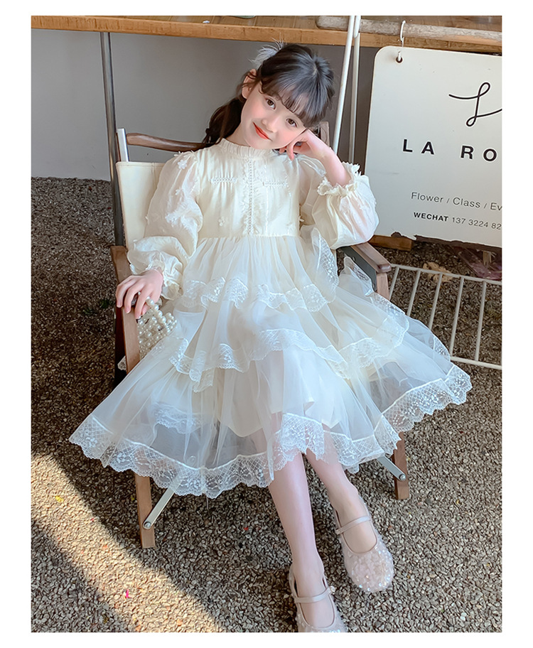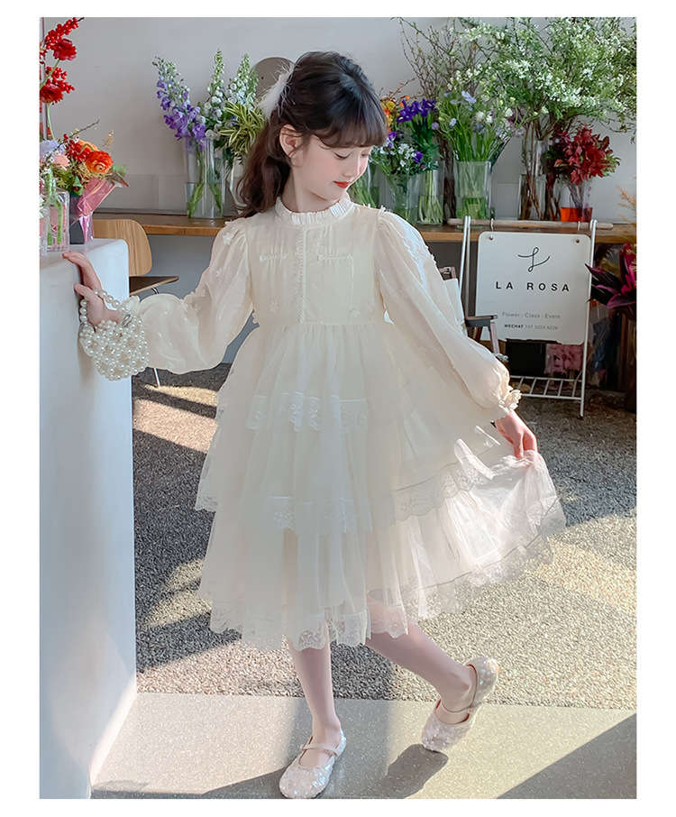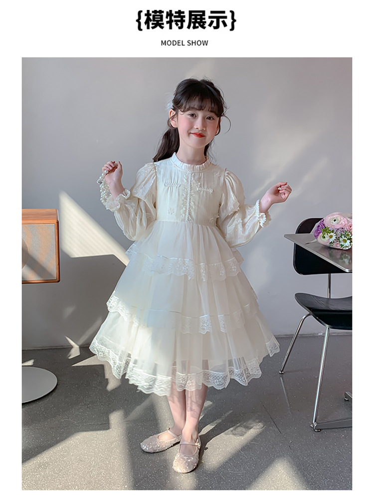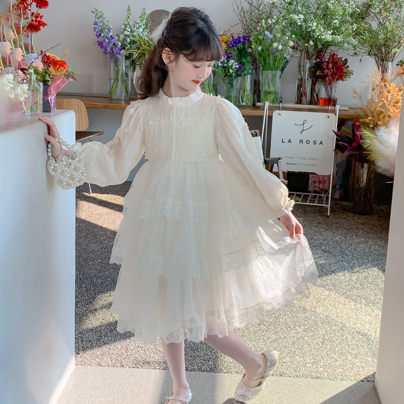 여아 가을 긴팔 레이스 드레스 2026 신상 메쉬 베이지 공주 드레스 얇은 스타일 중대형 아동 생일 드레스스토어 가기