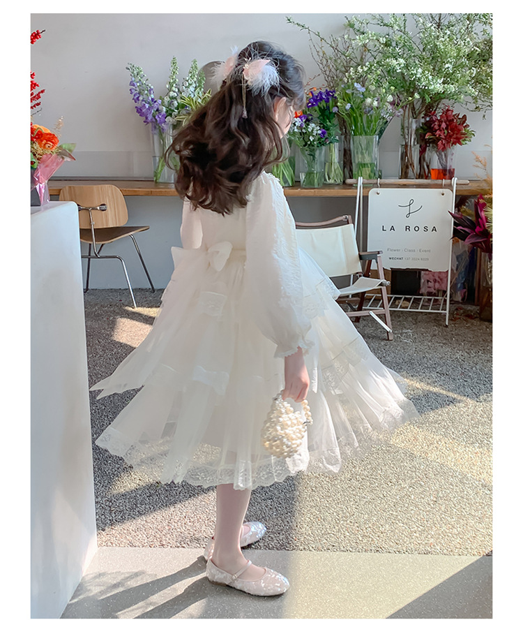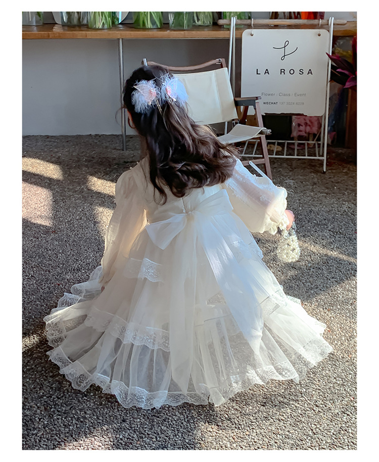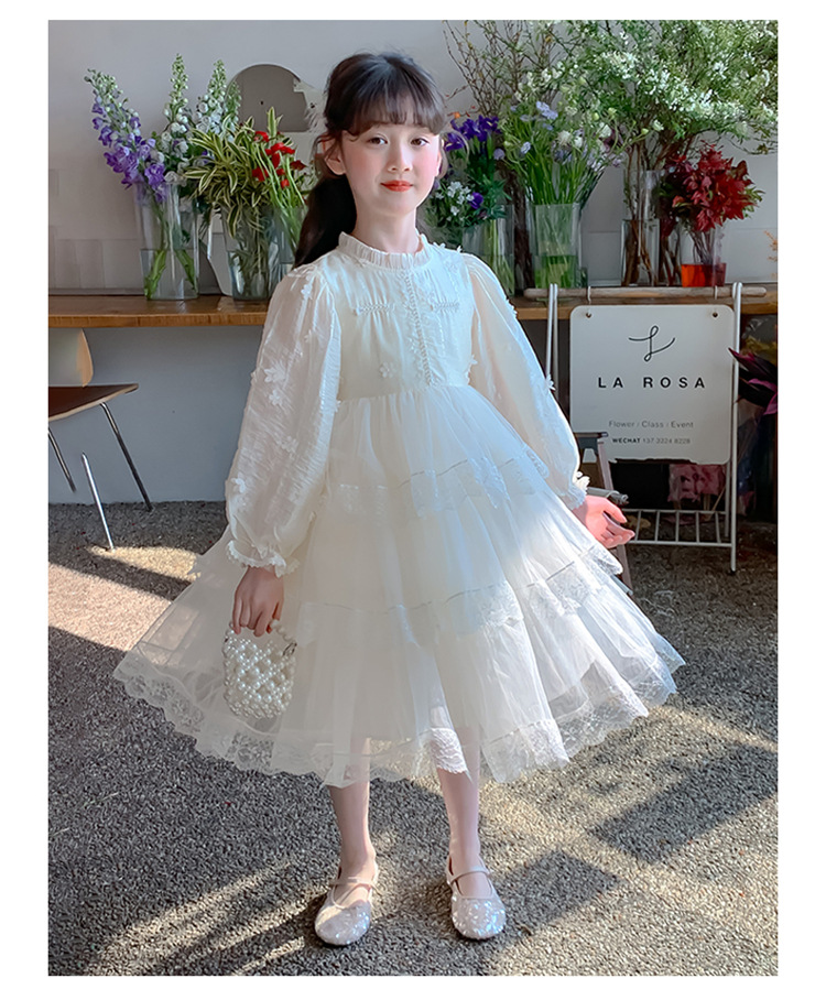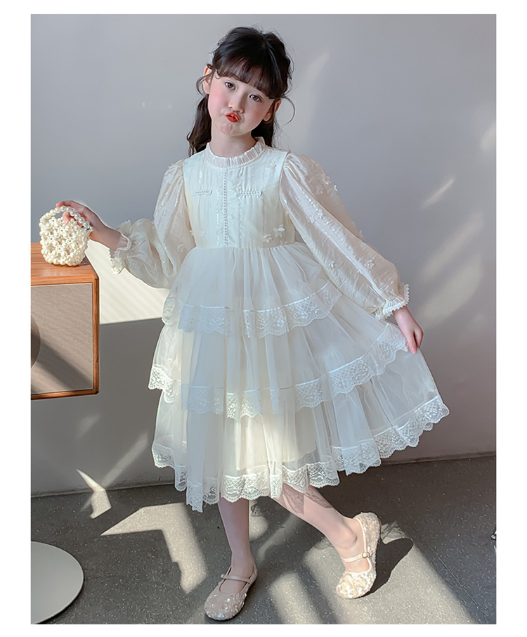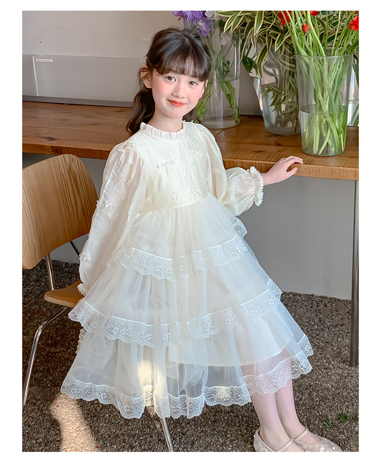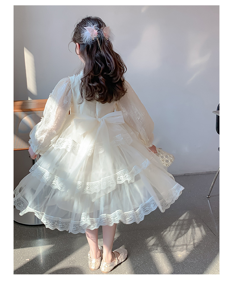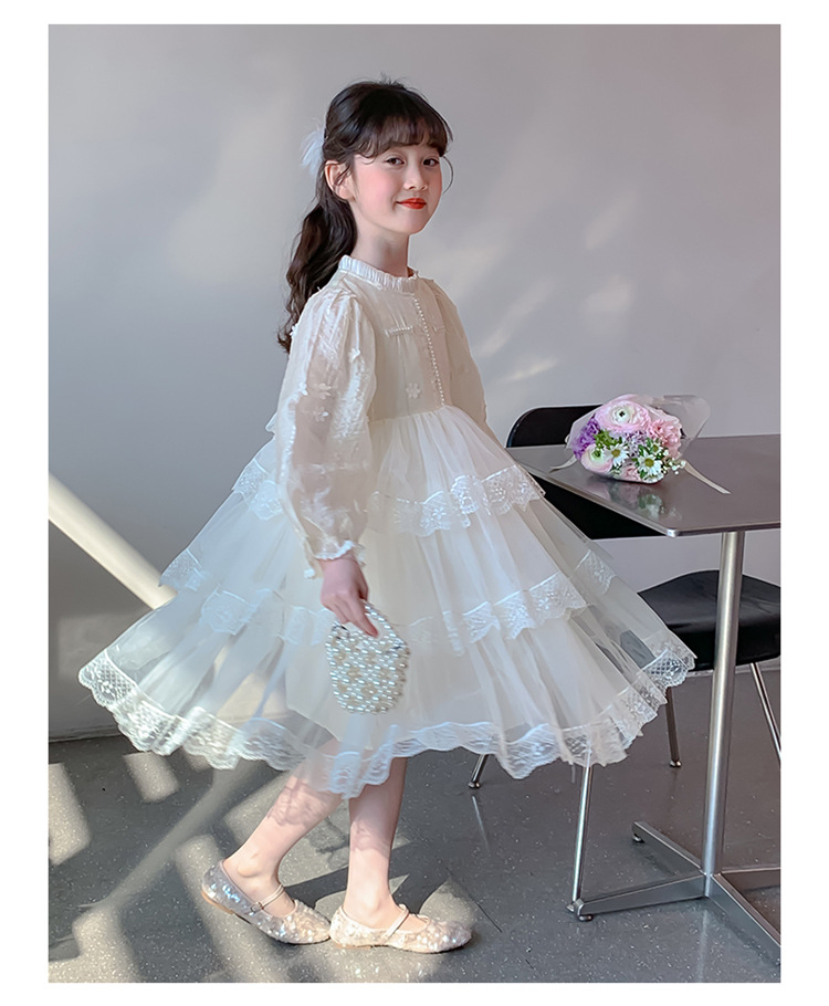 여아 가을 긴팔 레이스 드레스 2026 신상 메쉬 베이지 공주 드레스 얇은 스타일 중대형 아동 생일 드레스스토어 가기