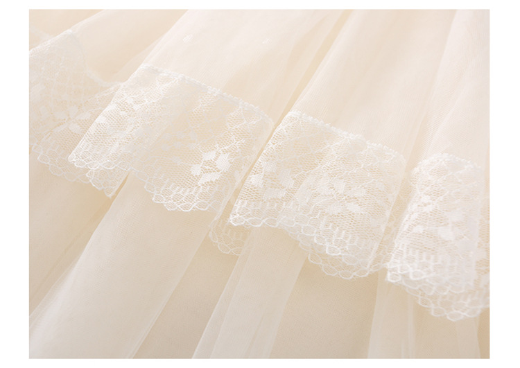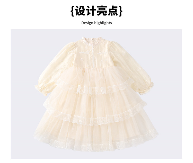 여아 가을 긴팔 레이스 드레스 2026 신상 메쉬 베이지 공주 드레스 얇은 스타일 중대형 아동 생일 드레스