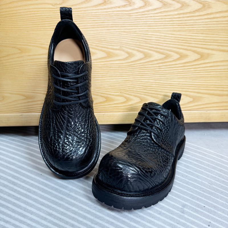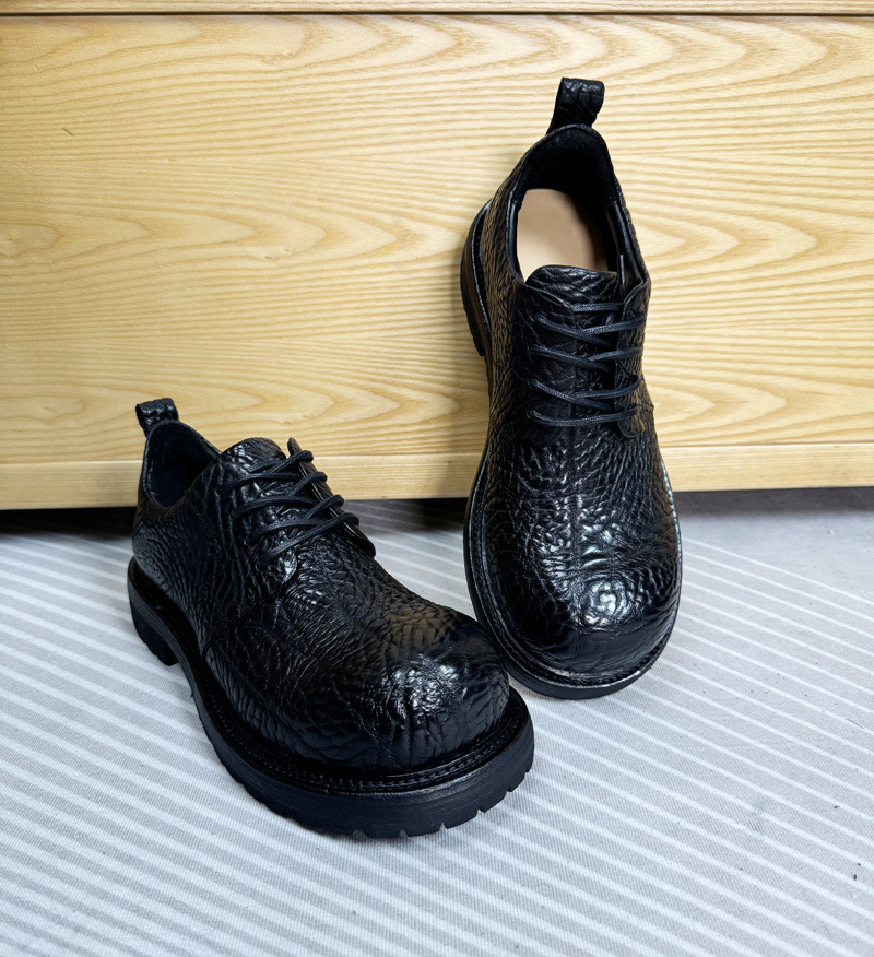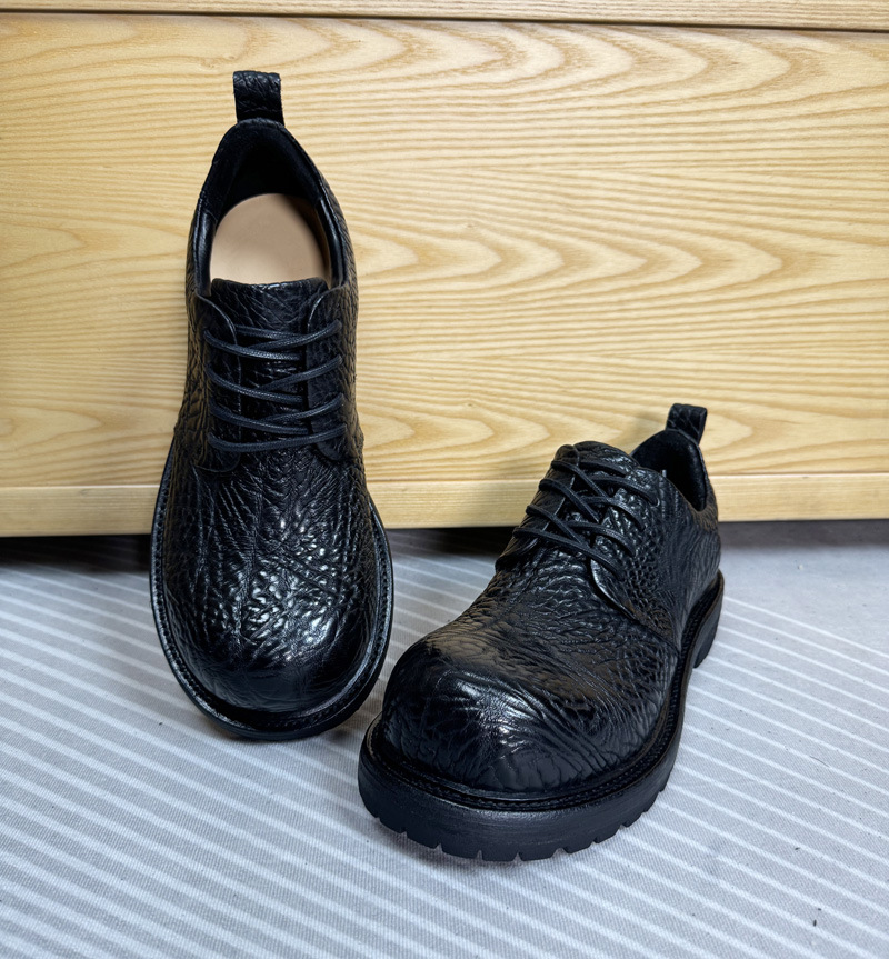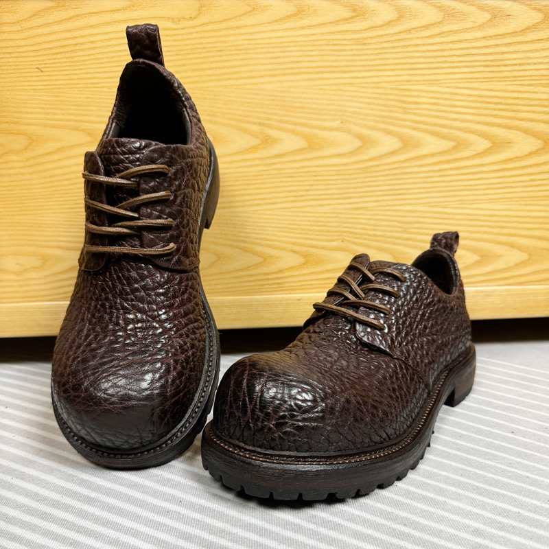중공업 워시 카우히드 빅 토 더비 신발 정품 가죽 두꺼운 바닥 트렌디 신발 남성 캐주얼 신발 낮은 작업복 신발 높이 증가
