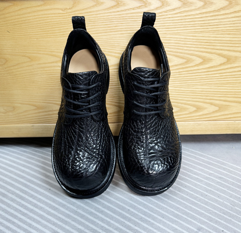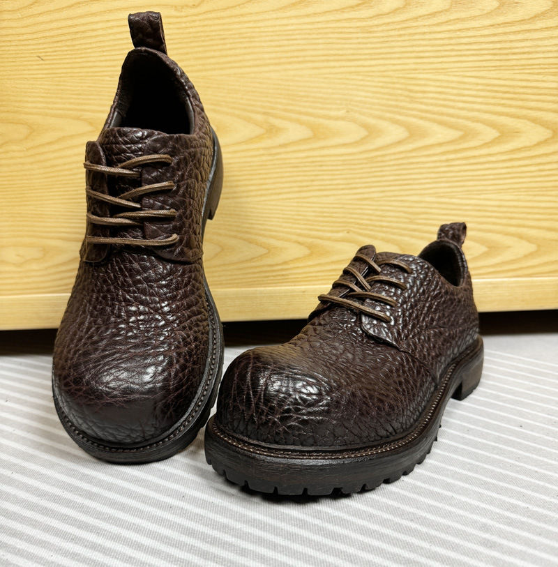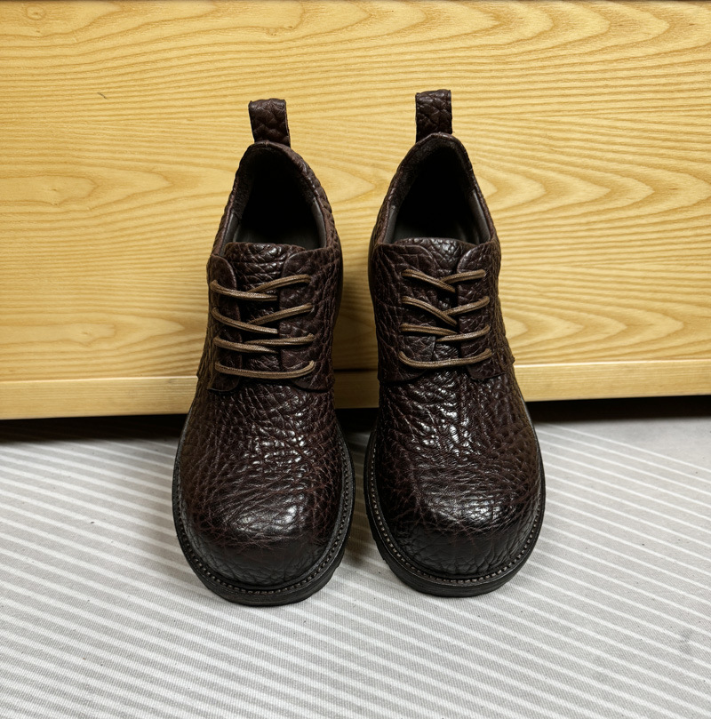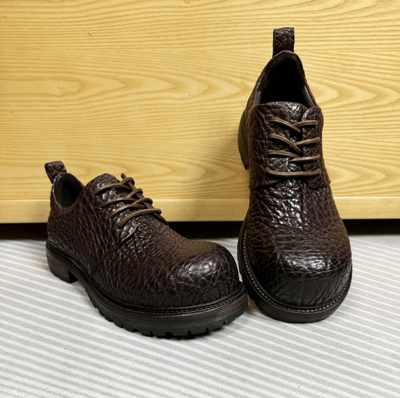 중공업 워시 카우히드 빅 토 더비 신발 정품 가죽 두꺼운 바닥 트렌디 신발 남성 캐주얼 신발 낮은 작업복 신발 높이 증가스토어 가기