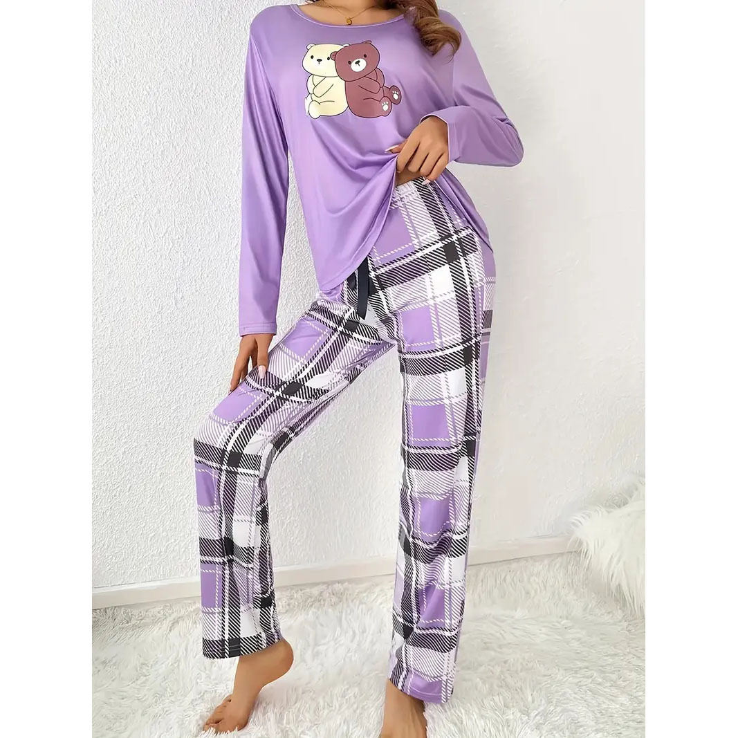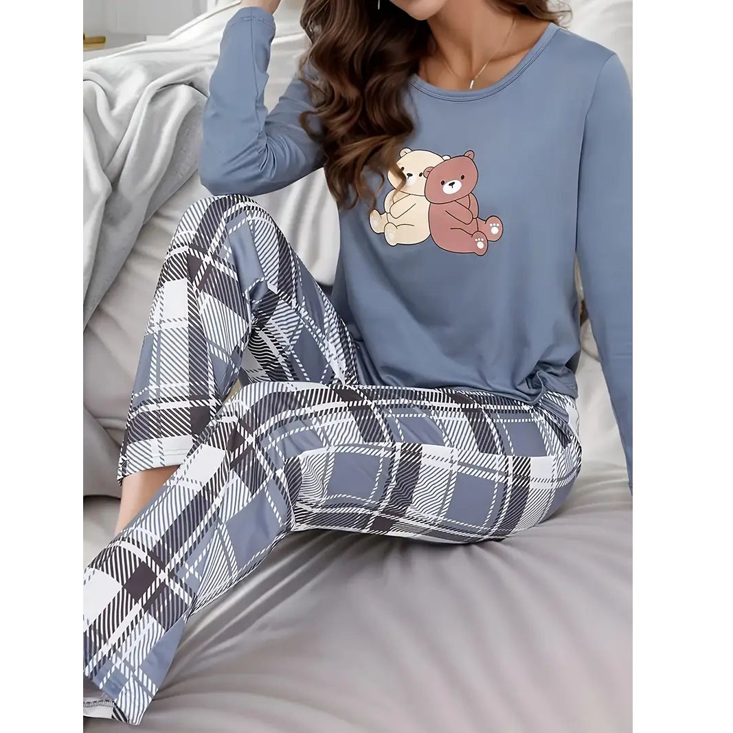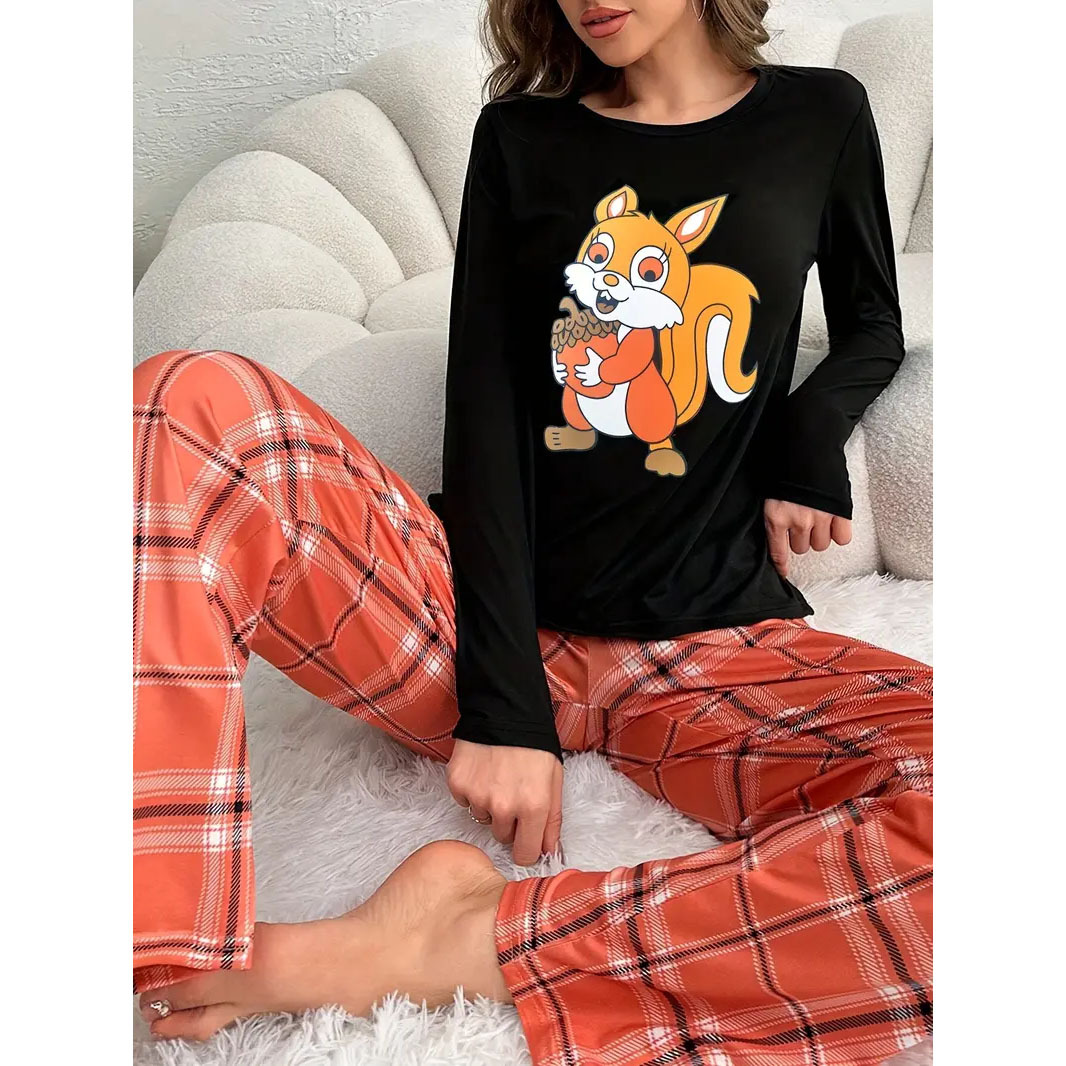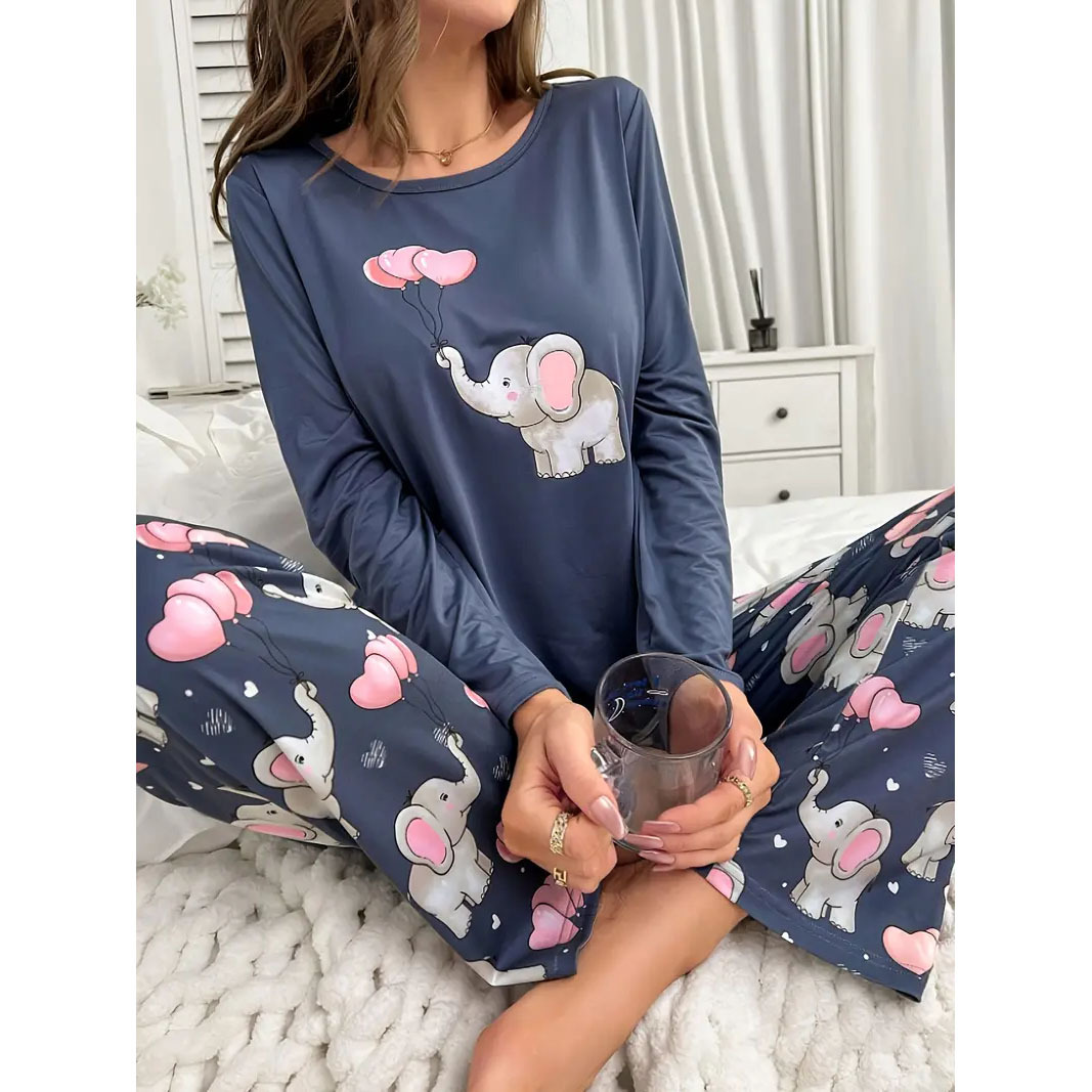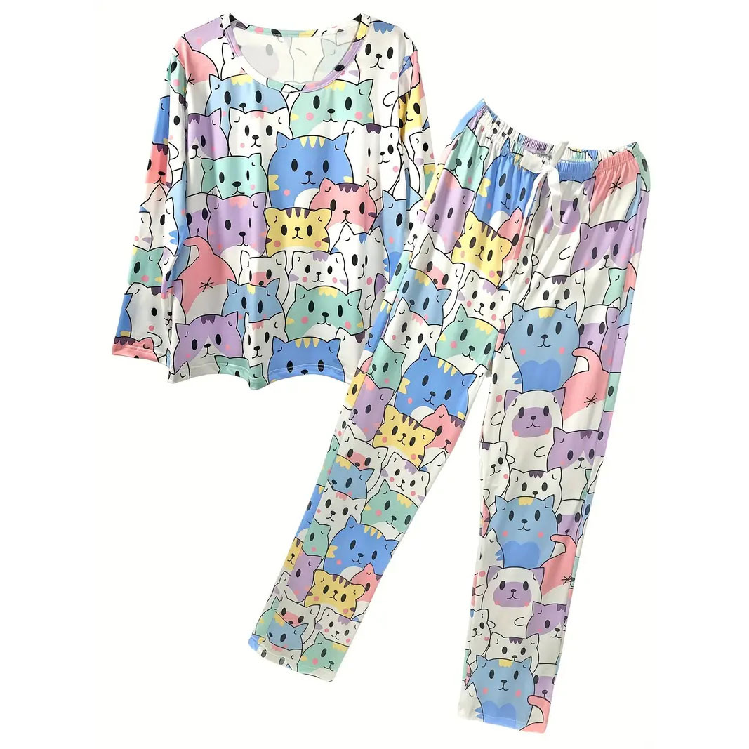 대외 무역 귀여운 만화 새끼 고양이 인쇄 잠옷 세트 유럽과 미국 느슨한 레저 동물 숙녀 홈 의류 세트