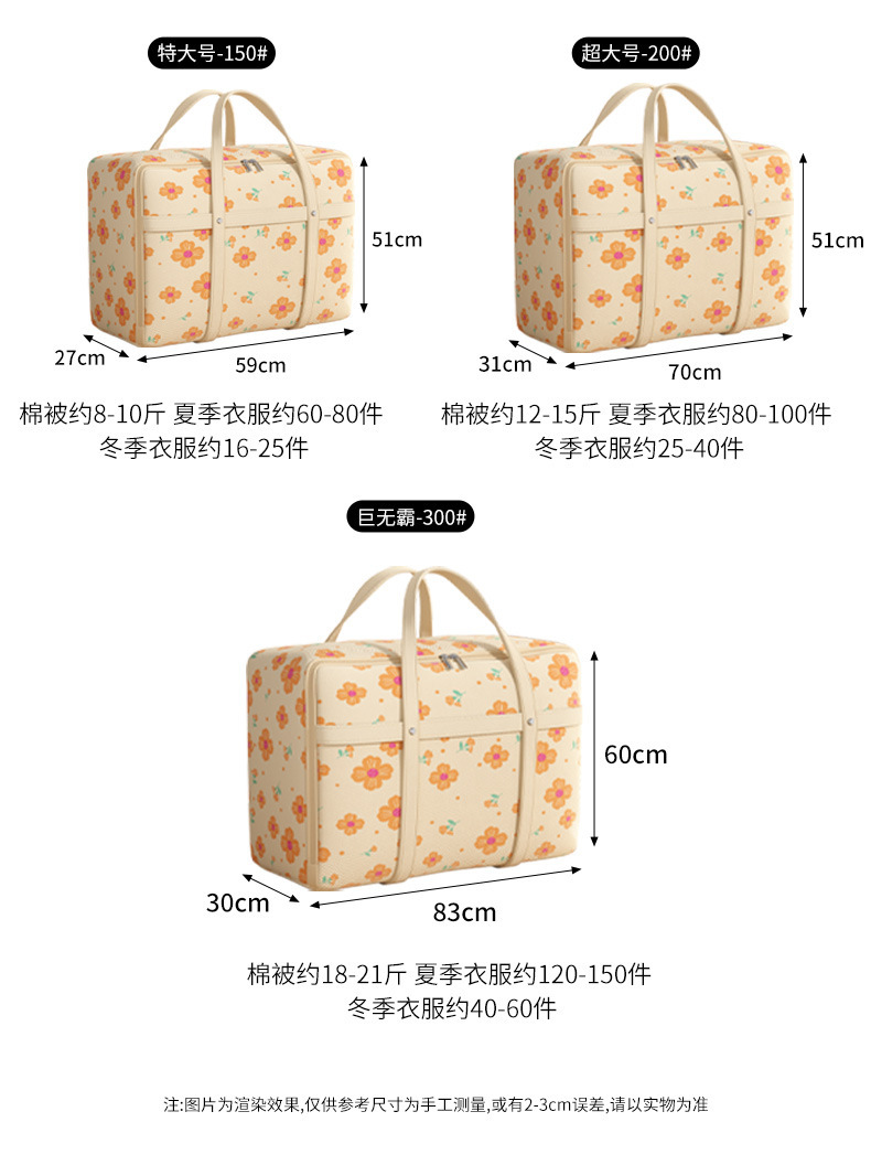 데이지 옥스포드 천 의류 포장 가방 이불 수하물 보관 가방 리벳 강화 양면 방수 포장 가방